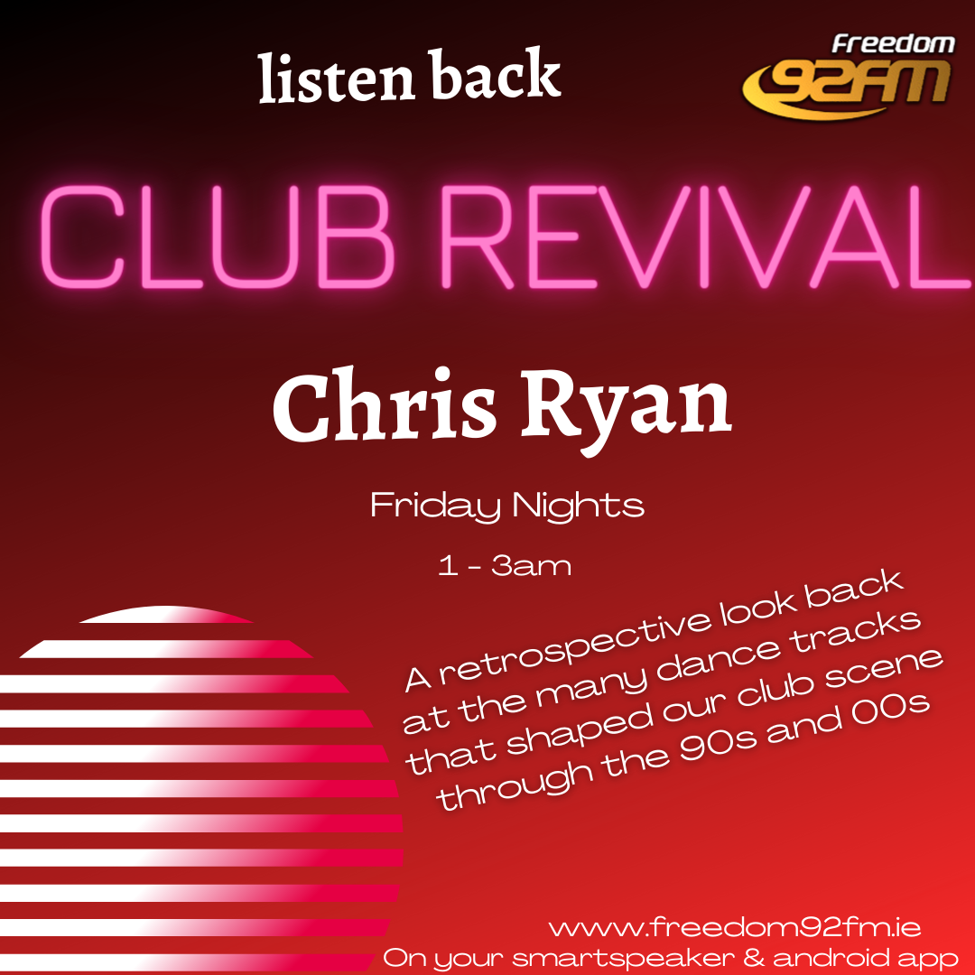 Listen Back as Chris Ryan takes a retrospective look back over the many dance tracks that have shaped our club scene through the 90s and 00s every Friday Night, Expect Trance, Techno and House tracks over the 2 decades from the likes of Underworld, Gabriel and Dresden, Ferry Corsten, Faithless, The Prodigy, Wink, Jam and Spoon, Sander Kleinenberg, Slam, Union Jack and many more in between!