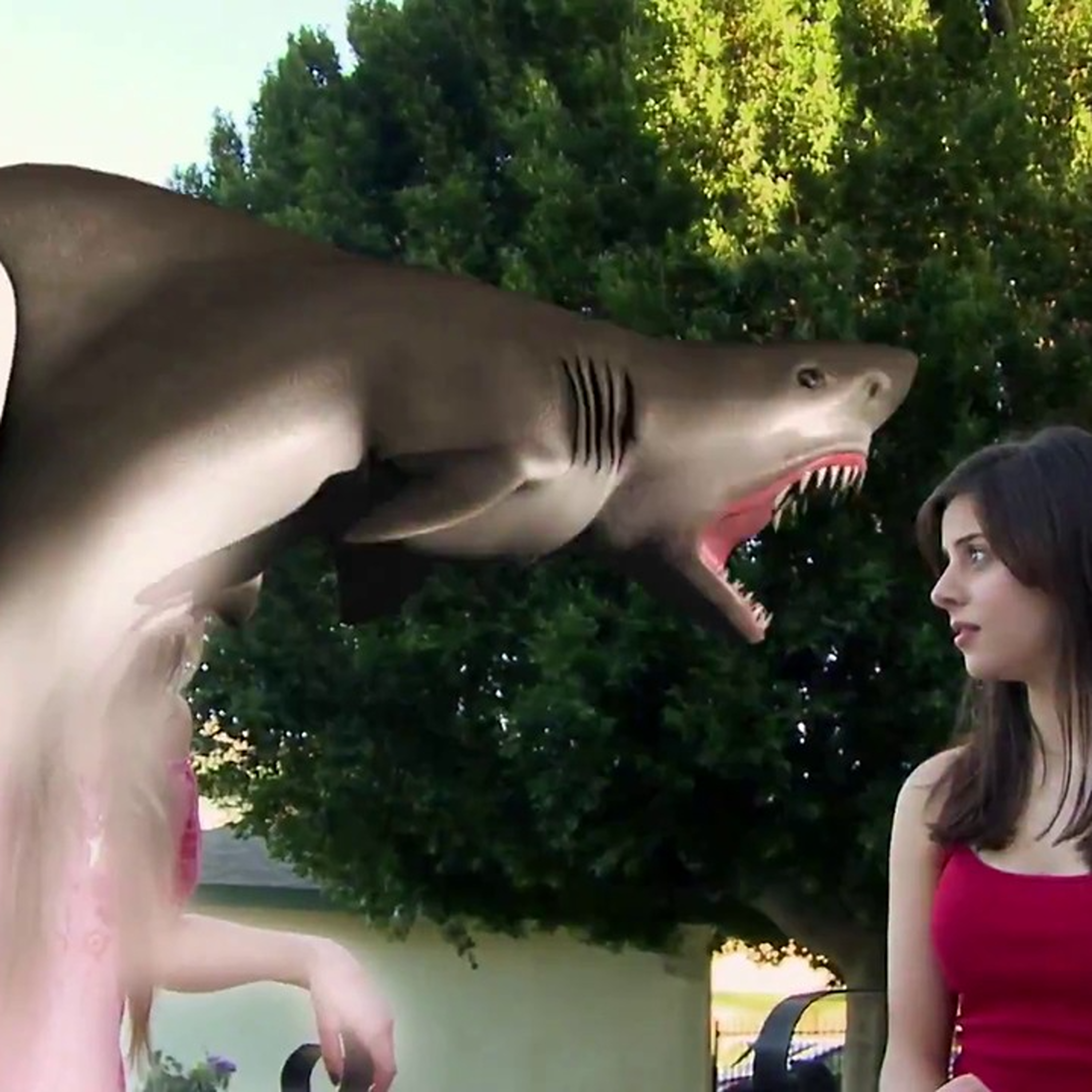 90210 Shark Attack stars Jaws 2 alum, Donna Wilkes, as a professor of Marine Biology with a sinister ulterior motive on a school trip. A haunted shark tooth necklace, and long long long shots of people walking will keep you on the edge of your seat and wondering why you haven't just stood up and left.