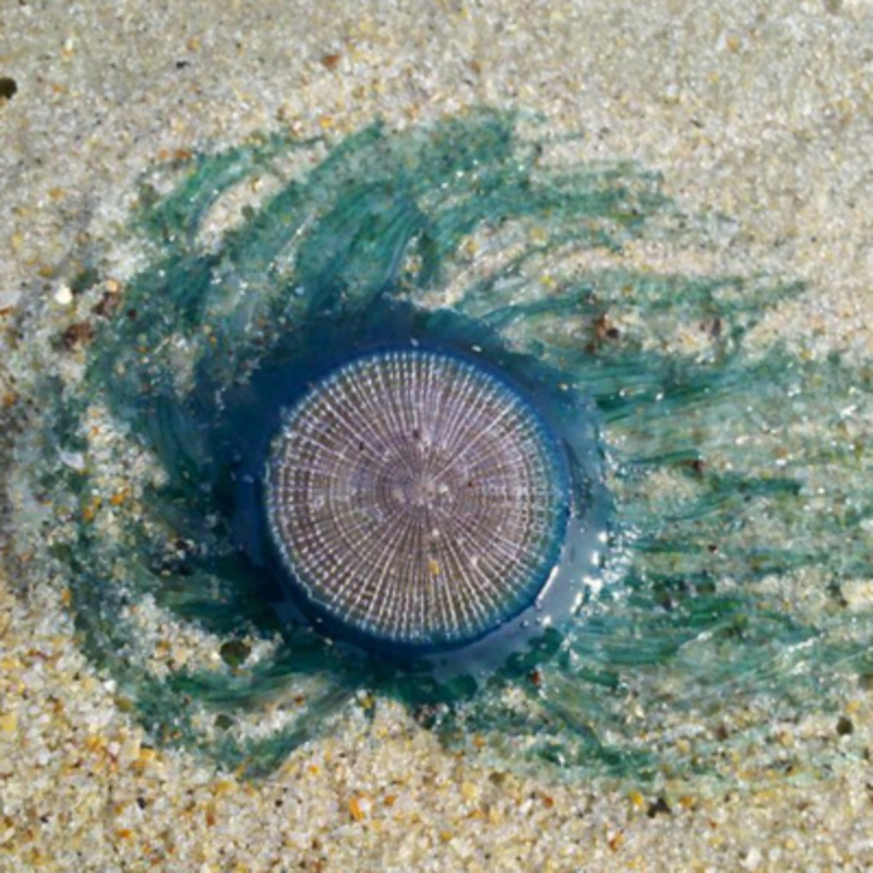 Learn about this tiny, stinging hydrozoan! The blue button (Porpita porpita, blue button jellyfish). Blue button jellyfish facts!