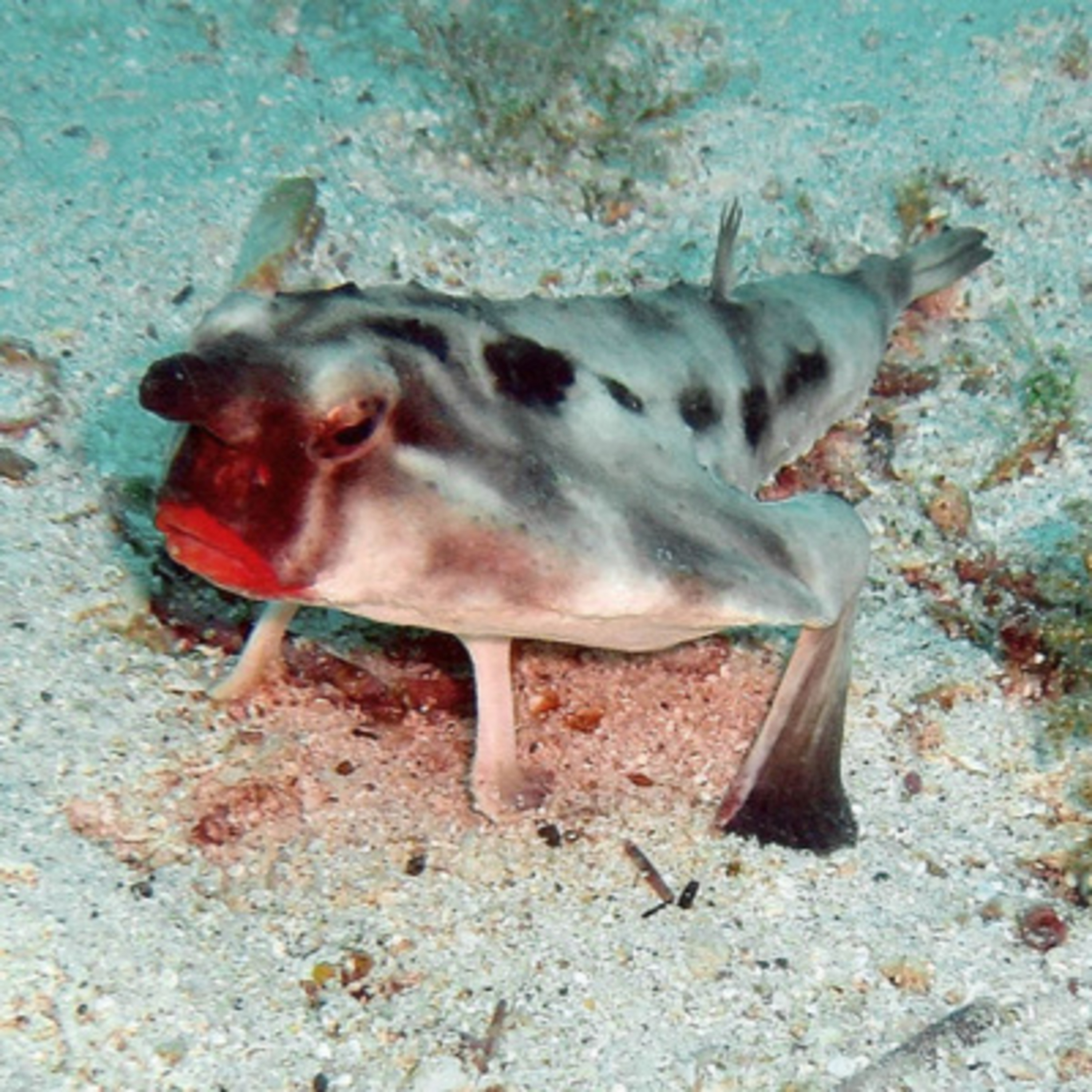 Quick facts about this bottom dwelling organism with modified fins for walking! The red-lipped batfish (Ogcocephalus darwini, Galapagos batfish). Red-lipped batfish facts!