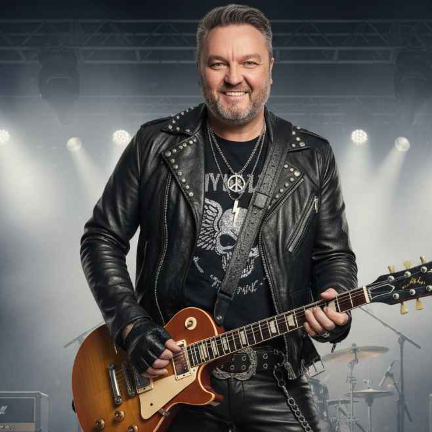 Elvis in leather, shaking hips divine,