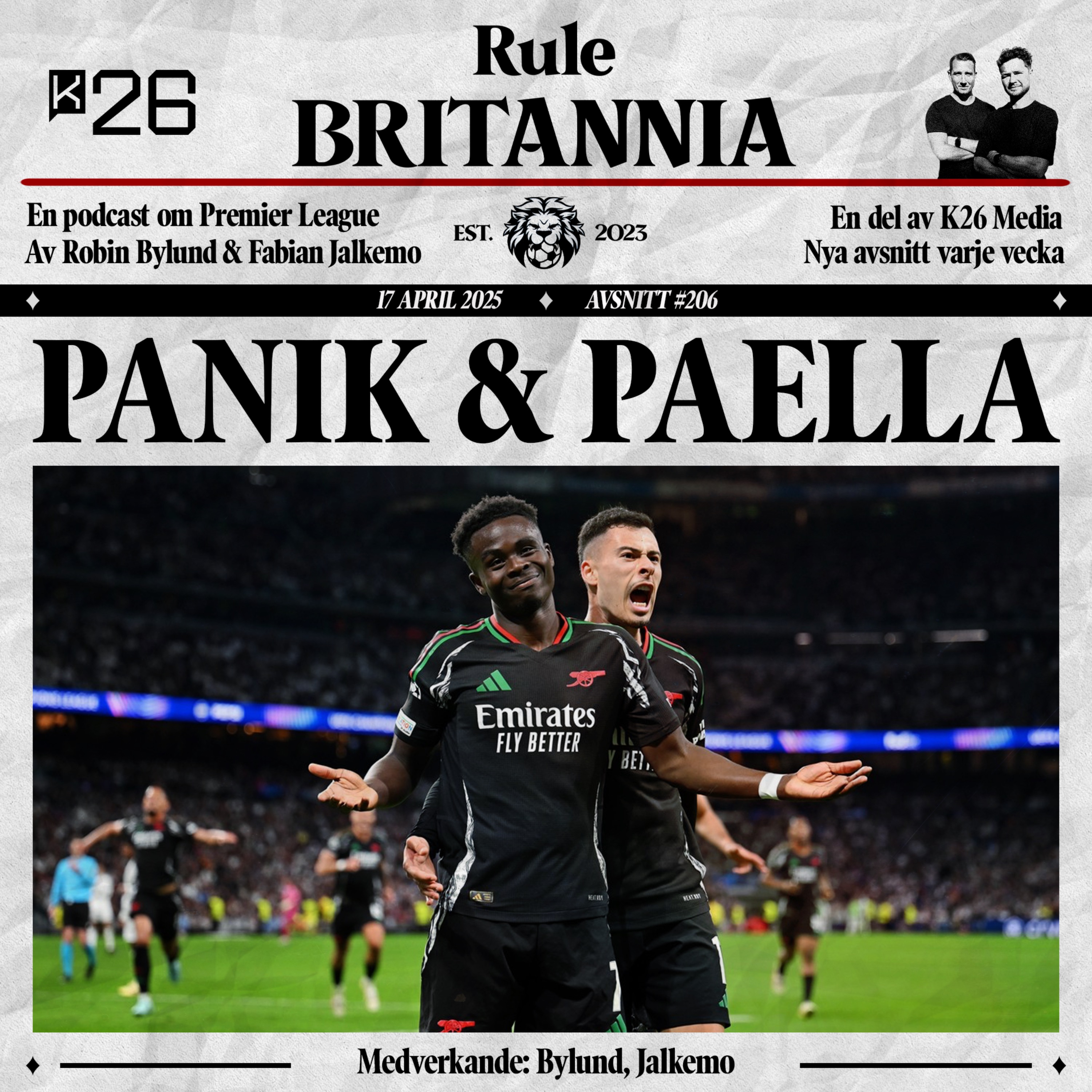 Artetas fullträff över 180 minuter och Arsenals kollektiva asfaltering av Real. Sakas stjärnstatus men även skamlöst stulna läktarsånger. Villa föll med flaggan i topp - och är Morgan Rogers nästa miljardman?! Segermaskinen Newcastle, Uniteds sista chans att rädda säsongen och vilket är ligans bästa mittfält?