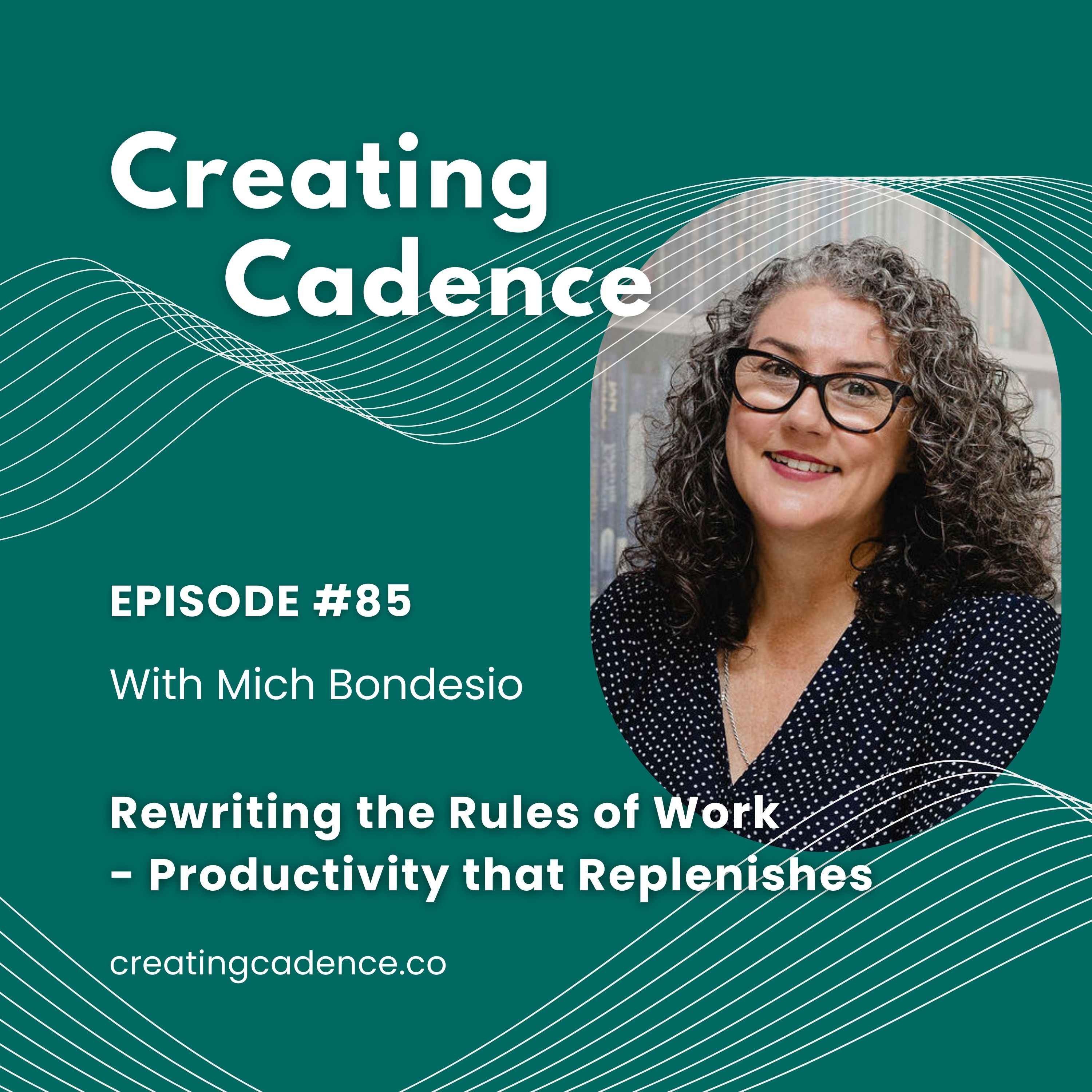 In Episode 85 of Creating Cadence, Mich Bondesio explores regenerative productivity — an approach to work that restores energy, enhances creativity, and prevents burnout, instead of depleting us.