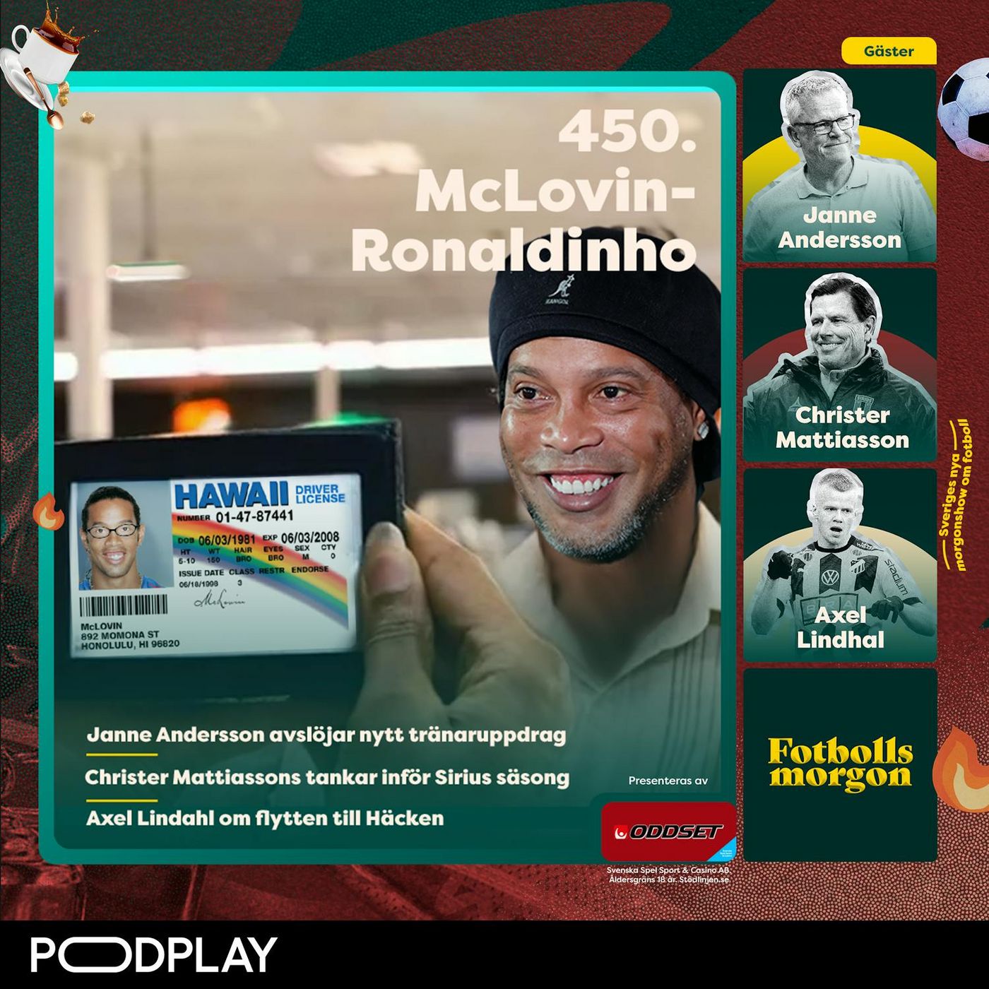 Avsnitt 450 av Fotbollsmorgon inleds på bästa vis med ett samtal till Seans mamma som återigen skickat med en salad olivie och en aubergineröra till oss som vi avnjuter under inledningen. Vi ringer sedan upp Sirius tränare Christer "Kitten" Mattiasson som tycker det är pinsamt av media att tippa Sirius på en 12:e plats i år.