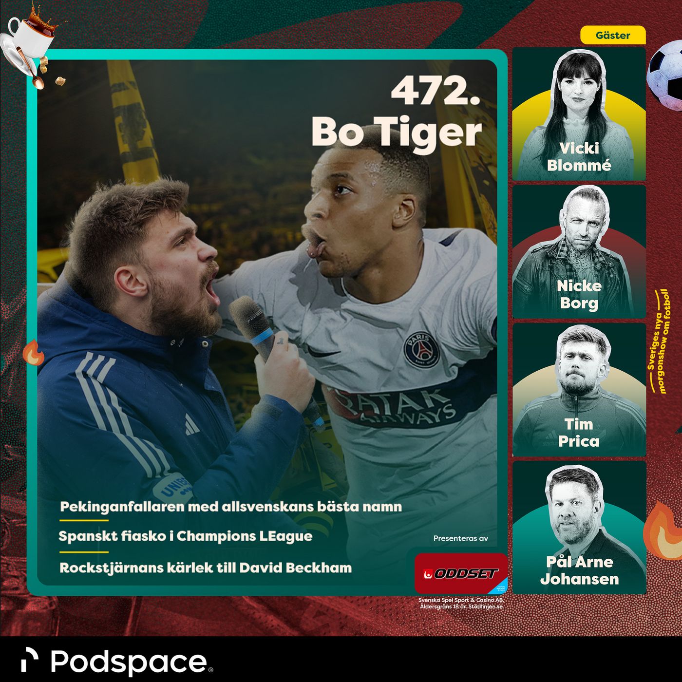 Slutligen får vi besök i studion av en svensk rockklassiker i dubbel bemärkelse – som sångare och gitarrist i bandet “Backyard Babies” och programledare på radiokanalen Rockklassiker. Hur ser fotbollsintresset egentligen ut och varför har David Beckham blivit en stor favorit?