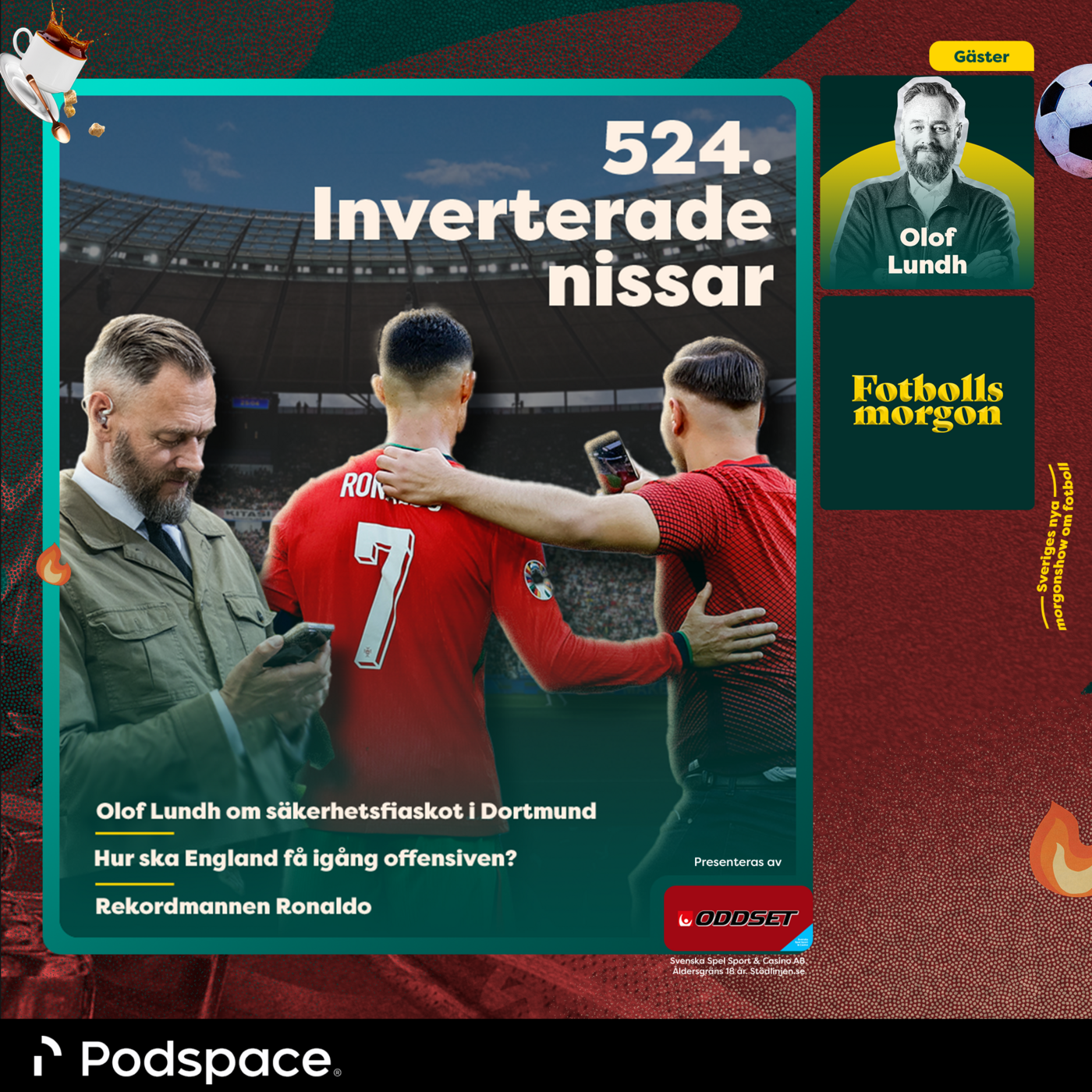 I Portugals match mot Belgien fick vi se hela sex planstormare ta sikte på Cristiano Ronaldo. Olof Lundh får berätta om säkerhetsläget på arenorna och hur UEFA misslyckas gång på gång med att stoppa inspringande supportrar. Han får även ge sin syn på Serbiens hot att dra sig ur turneringen och snacket runt Gareth Southgate och Englands fortsatta EM.