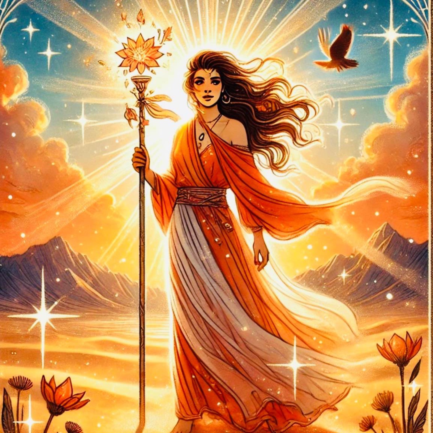 Se for deg at du er i et mykt mørke – ikke truende, men hvilende. I dette rommet tennes en gnist. Kanskje en stjerne, kanskje en blomst som lyser i natten. La lyset vokse sakte, fylle deg med varme. Pust inn lyset, pust ut det gamle. Kjenn hvordan du åpner deg for en ny begynnelse.