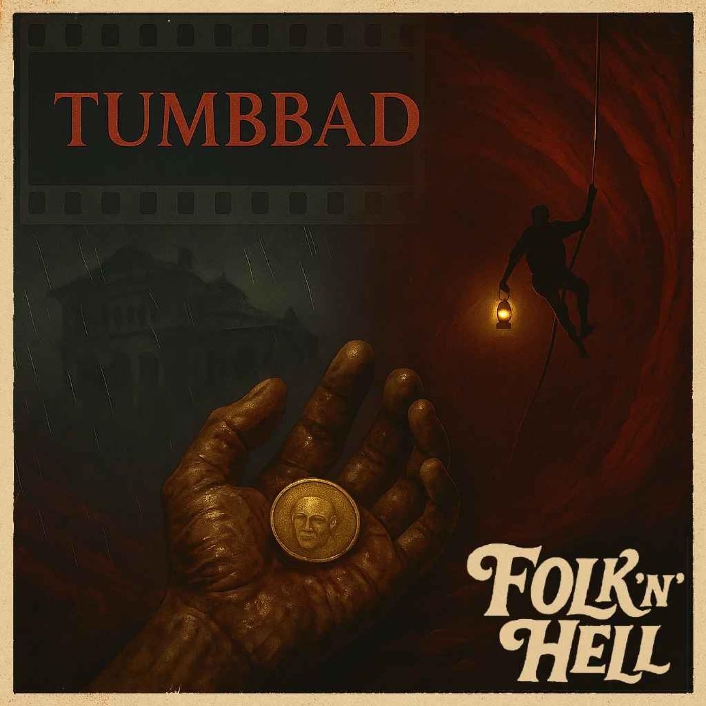 This time on FolknHell, Andy, David, and Dave take their first cinematic trip to India for the visually lush, rain-drenched folk horror tale Tumbbad — a film dripping with myth, greed, and muddy moral compromise. Set across three distinct time periods (starting in 1918), Tumbbad charts the generational consequences of disturbing a slumbering god called Hastar — a deity born from the womb of the Earth itself, cursed for his insatiable hunger for gold and grain.