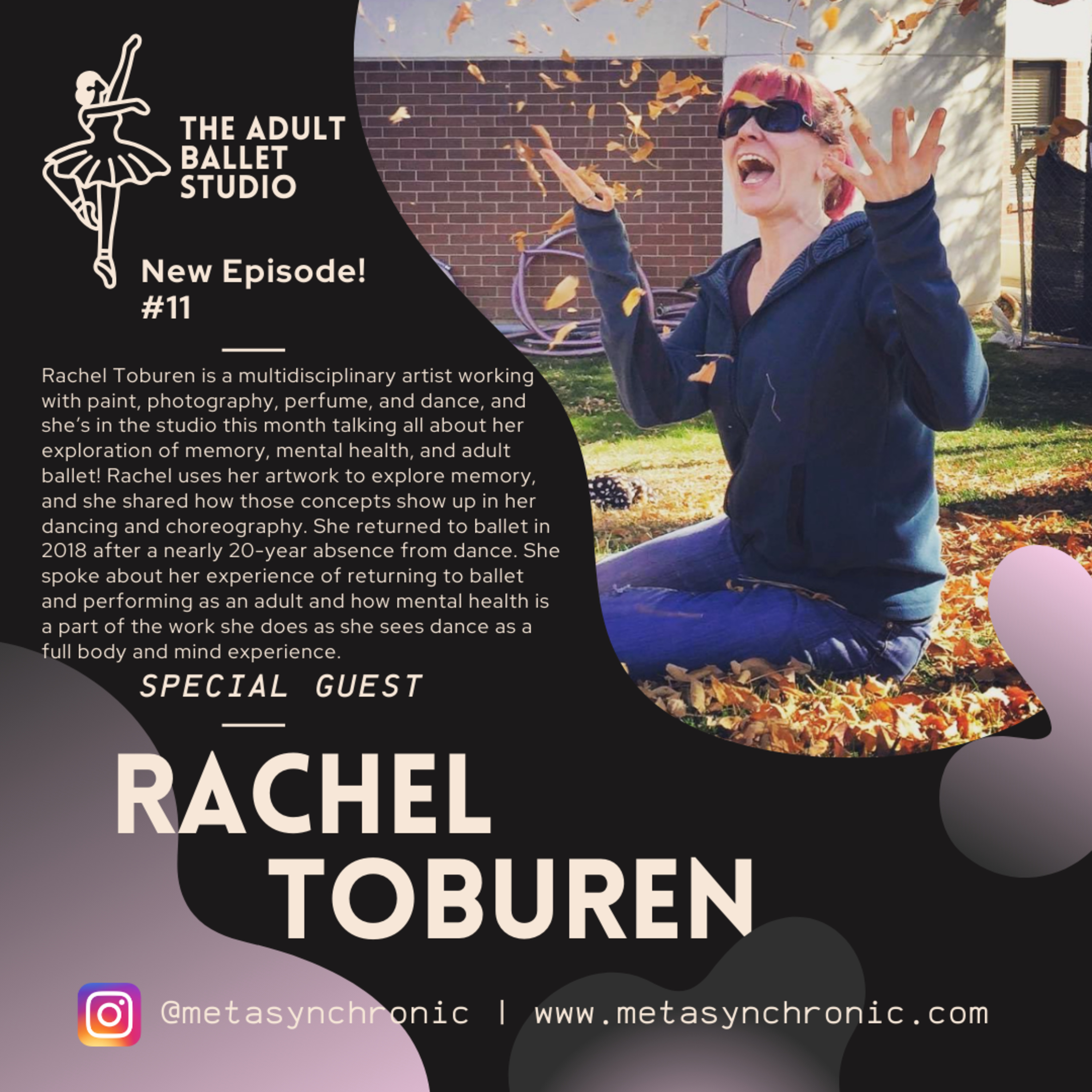 Rachel Toburen is a multidisciplinary artist working with paint, photography, perfume, and dance, and she’s in the studio this month talking all about her exploration of memory, mental health, and adult ballet! Rachel uses her artwork to explore memory and the experience of memory, and she shared how those concepts show up in her dancing and choreography. We talked about how sights, sounds, and smells can trigger certain memories and how artwork can change as the mind takes in new experiences and memories evolve. Rachel returned to ballet in 2018 after a nearly 20-year absence from dance and has been training rigorously, even through the pandemic. In 2022, she began exploring the choreographic side of her interests, and this year, she’s working on developing a full short ballet as a retelling of the story of Medusa in five movements. She spoke with me about the experience of returning to ballet and performing as an adult, how she connects her painting and perfume work to dance, and how mental health is a big part of the work she does as she sees dance as a full body and mind experience. Check it out!