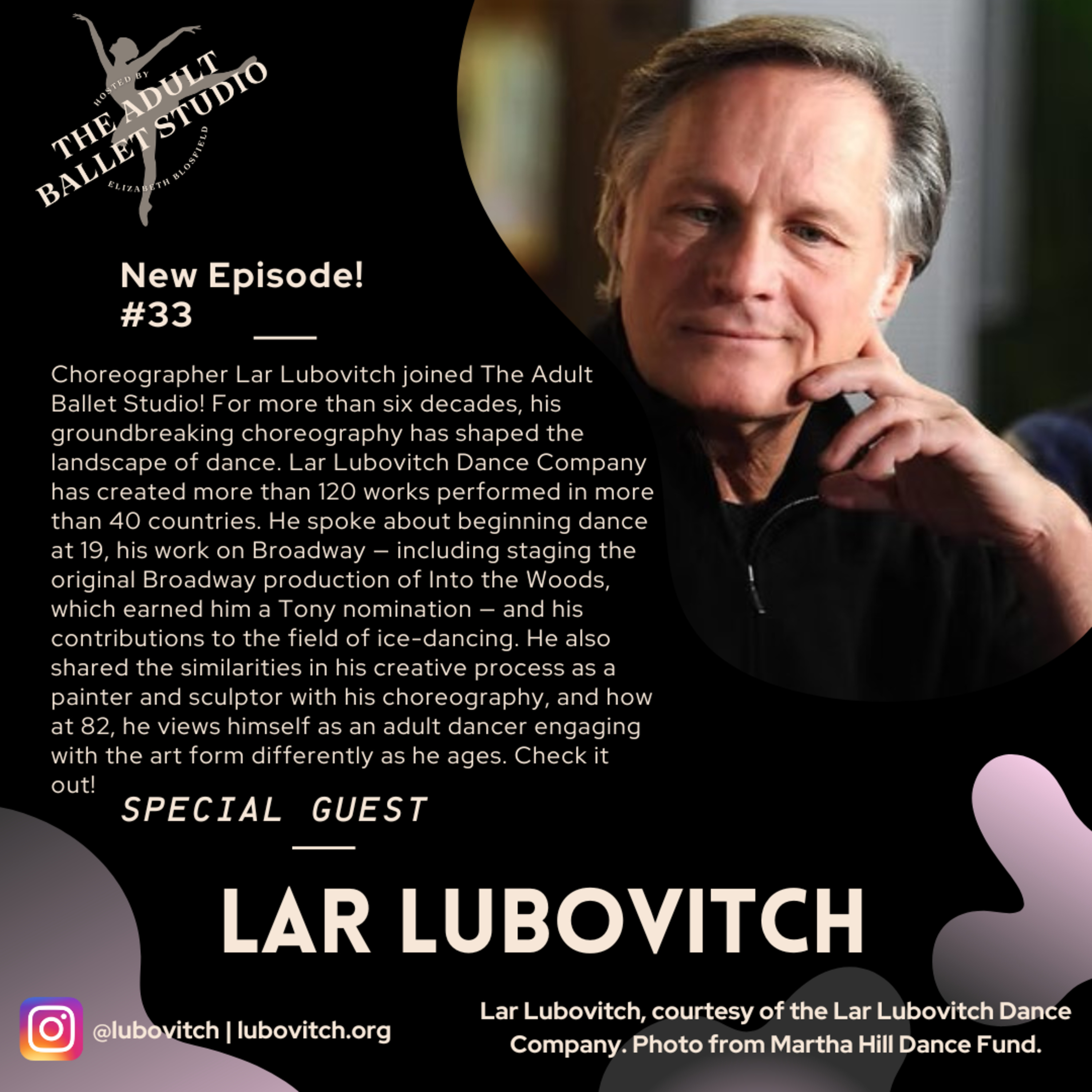 Lar says that from the moment he started dancing, he knew he would be a choreographer. But dance is a journey he began relatively late at 19. He spoke about the freedom his later start in dance gave him to experiment, mix styles, and create work that bridges the divide between ballet and modern dance. All of this propelled him into success as a groundbreaking choreographer.