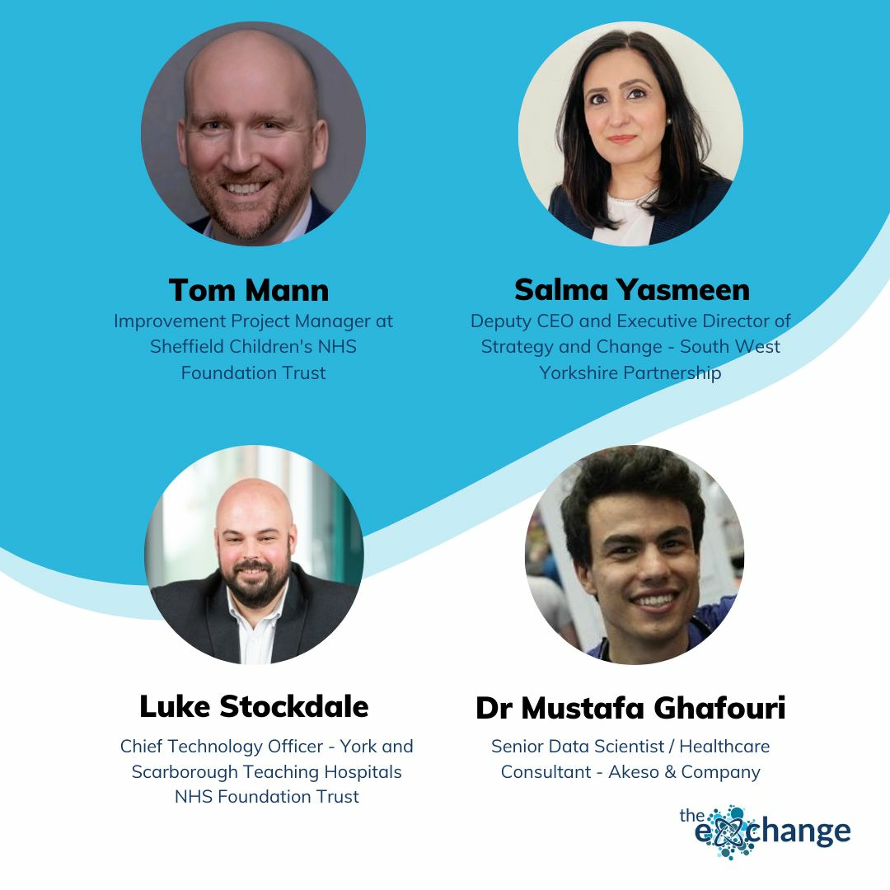 On today's podcasts, our guests are:Tom Mann - Improvement Project Manager at Sheffield Children's NHS Foundation TrustSalma Yasmeen - Deputy CEO and Executive Director of Strategy and Change - South West Yorkshire PartnershipLuke Stockdale - Chief Technology Officer - York and Scarborough Teaching Hospitals NHS Foundation TrustDr Mustafa Ghafouri - Senior Data Scientist / Healthcare Consultant - Akeso & Company
