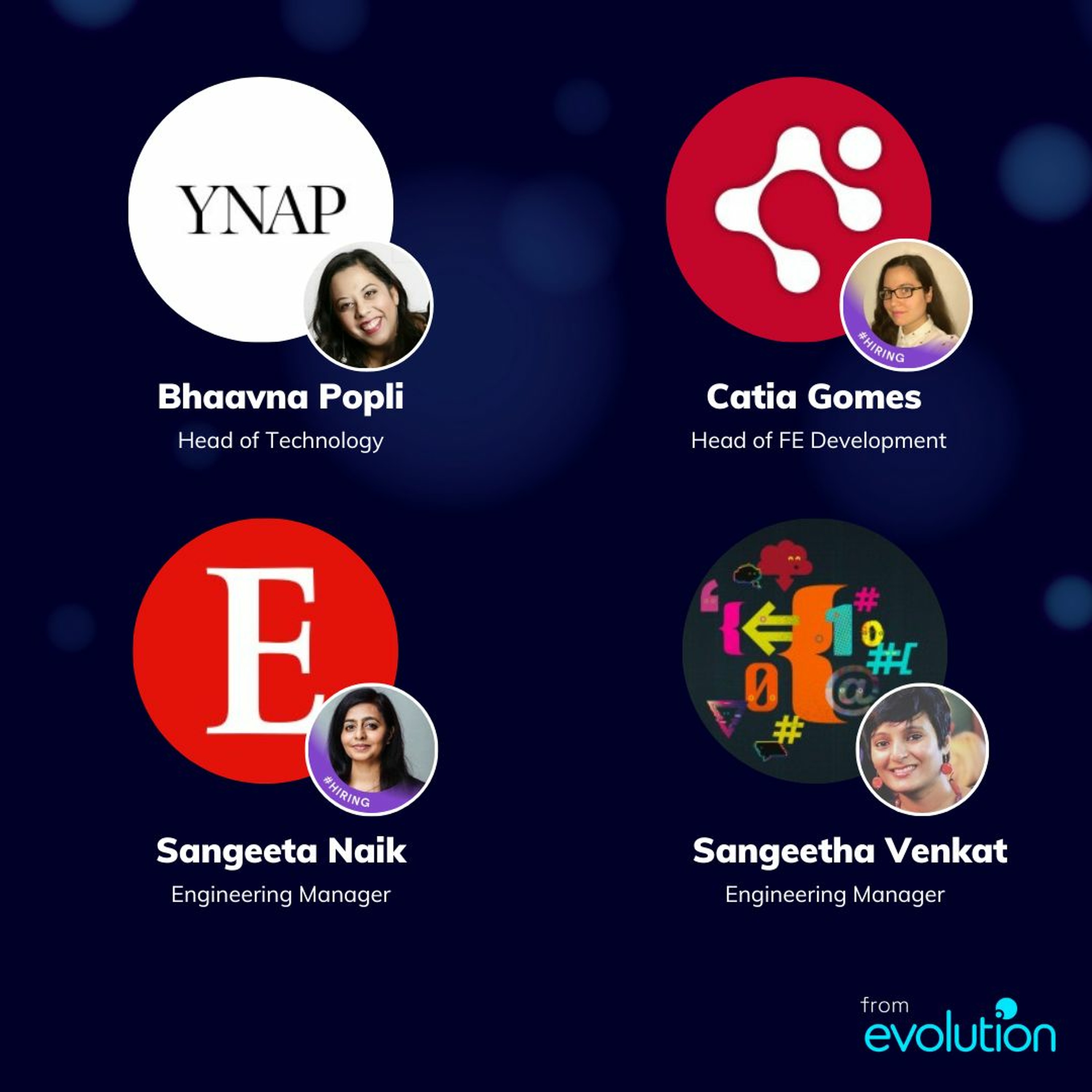 Today's host is:Mike SullivanAnd today's guests are:Bhaavna Popli - Head f Technology - YNAPhttps://uk.linkedin.com/in/bhaavna-bajaj-popli-2342ba1Catia Gomes - Head of FE Development - Codehousehttps://uk.linkedin.com/in/catiagomes82Sangeeta Naik - Engineering Manager - The Economisthttps://uk.linkedin.com/in/sangeeta-naikSangeeta Venkat - Engineering Manager - Sainsbury's Digtial Technology & Datahttps://uk.linkedin.com/in/sangeetha-venkat-97639517