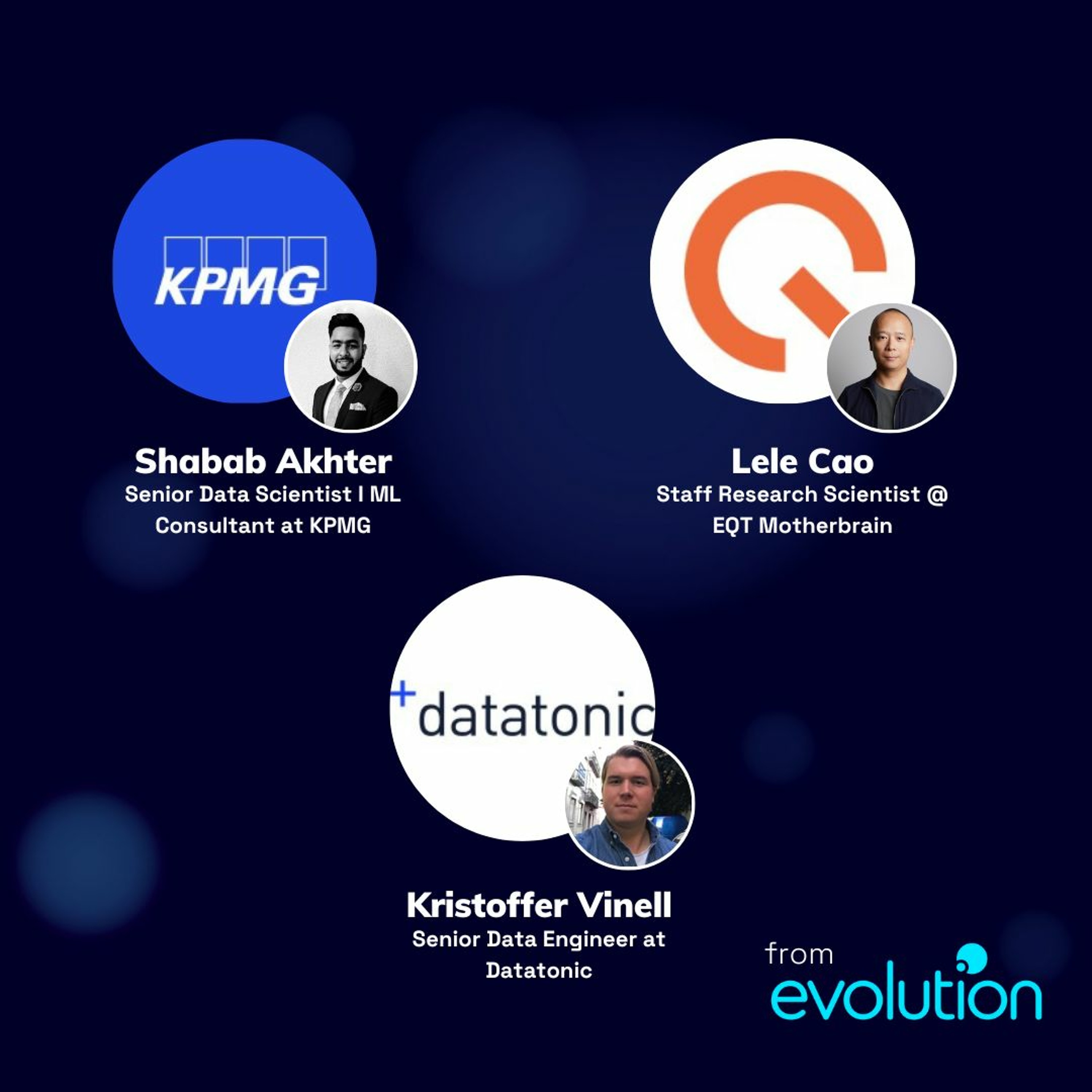 Today's host is:Charlotte RobertsAnd today's guests are:Shabab Akhter - Senior Data Scientist I ML Consultant at KPMGLele Cao - Staff Research Scientist at EQT MotherbrainKristoffer Vinell - Senior Data Engineer at Datatonic