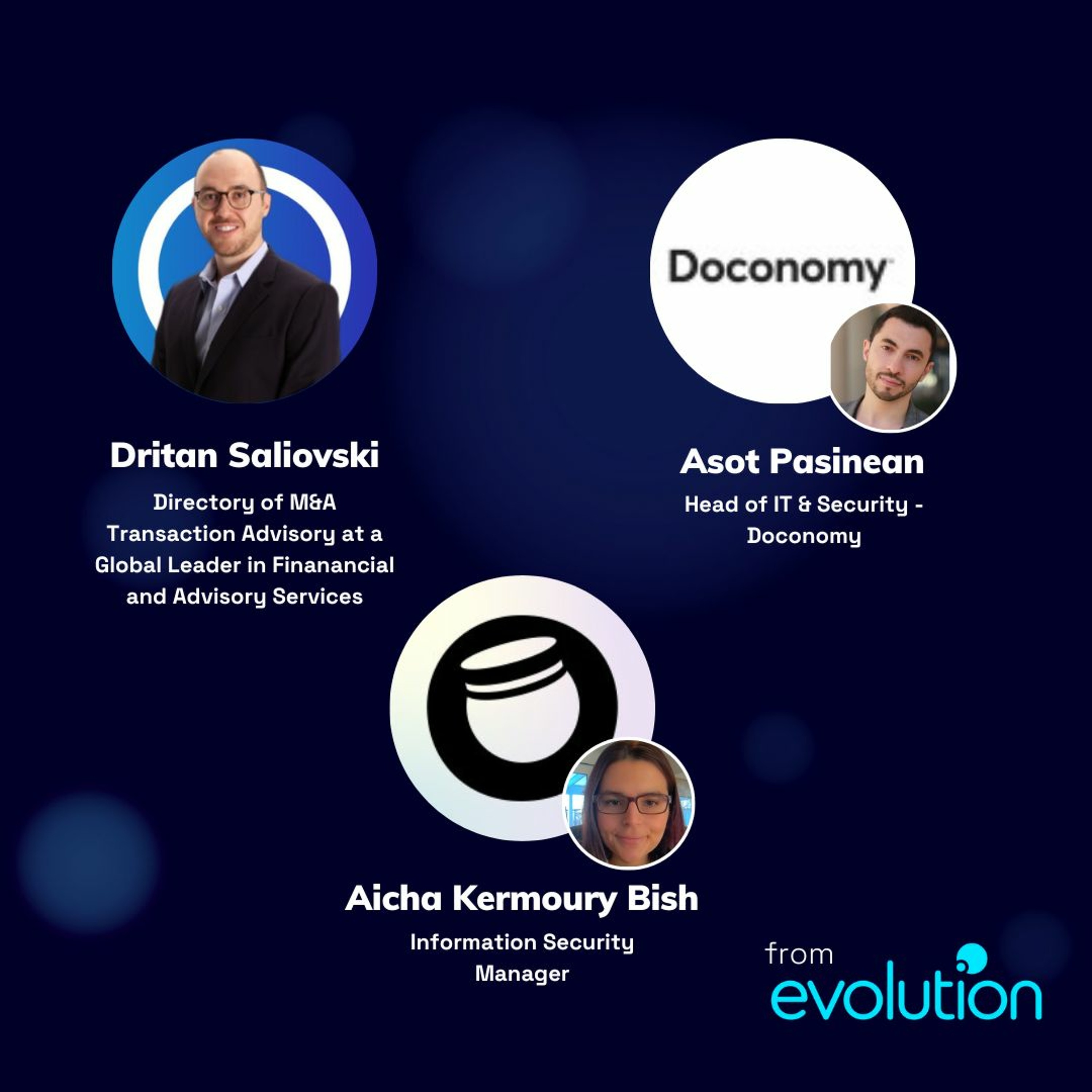 Today's host is:Abi StokesAnd today's guests are:Dritan Saliovski - Director - Nordic Head of Cyber M&A Transaction Services - AonAsot Pasinean - Head of IT & Security - DoconomyAicha Kermoury Bish - Information Security Manager - Billhop