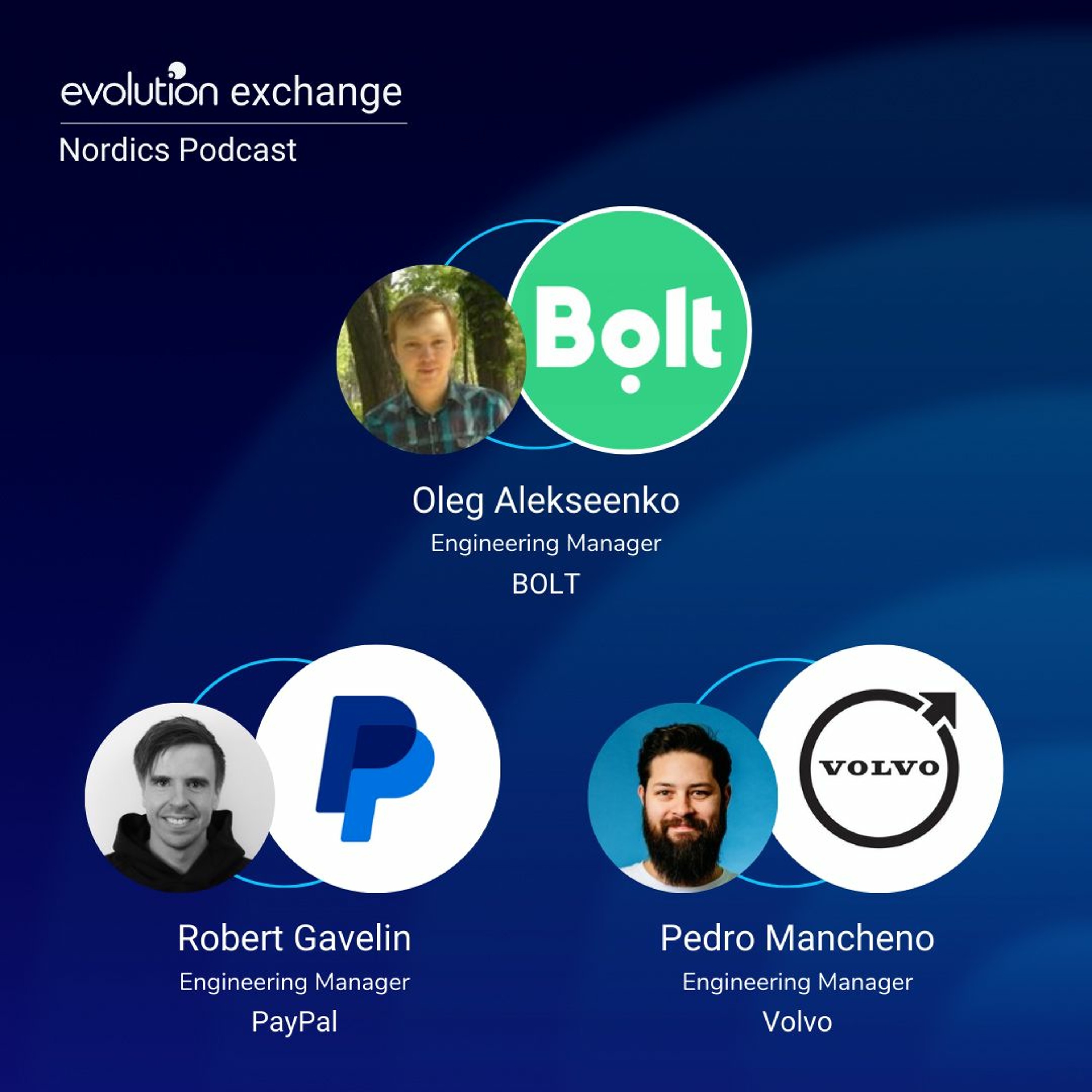 In this episode of Evo Nordics, titled "Developer To Manager," Chris Asbridge hosts a conversation with Oleg Alekseenko, Robert Gavelin, and Pedro Mancheno. Oleg Alekseenko is an Engineering Manager at BOLT, Robert Gavelin is an Engineering Manager at PayPal, and Pedro Mancheno is an Engineering Manager at Volvo. Join them as they discuss the transition from being a developer to a manager and delve into the challenges and insights gained along the way. Don't miss this insightful discussion with industry experts from top organizations.