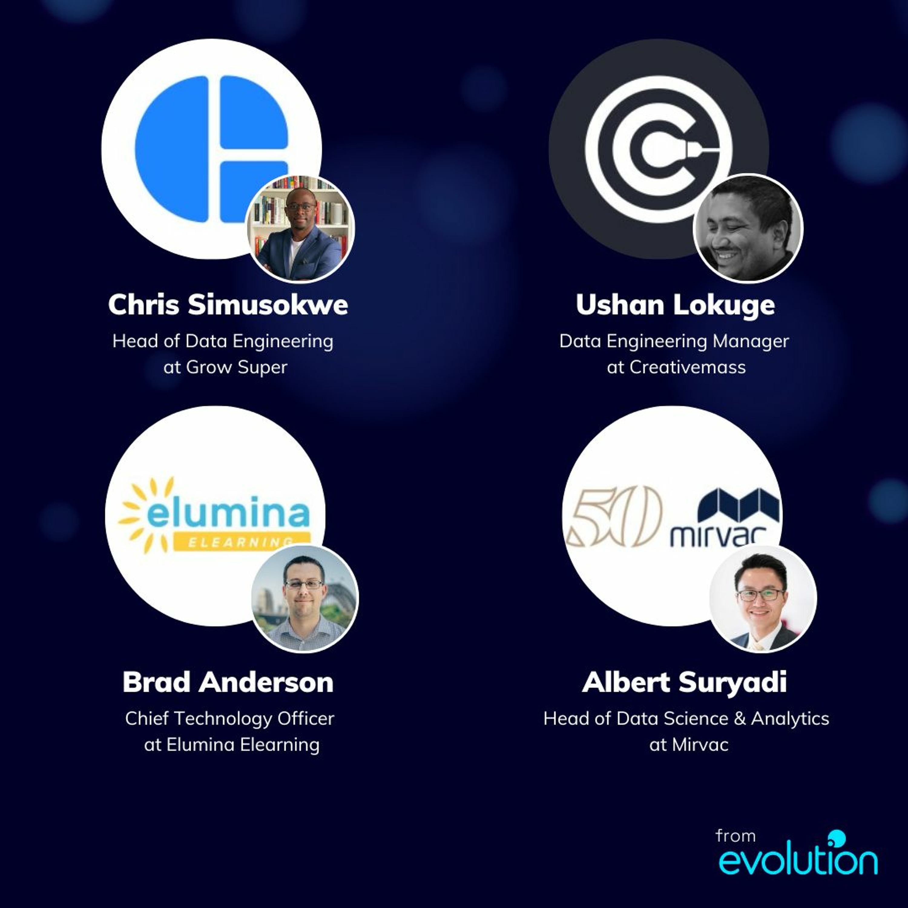 The Composition of Data Engineering Teams and Transitioning them into High Performing Teams with our host Vinolia and our podcast guests:Chris Simusokwe - Head of Data Engineering at Grow SuperUshan Lokuge - Data Engineering Manager at CreativemassBrad Anderson - Chief Technology Officer at Elumina ElearningAlbert Suryadi - Head of Data Science and Analytics at Mirvac