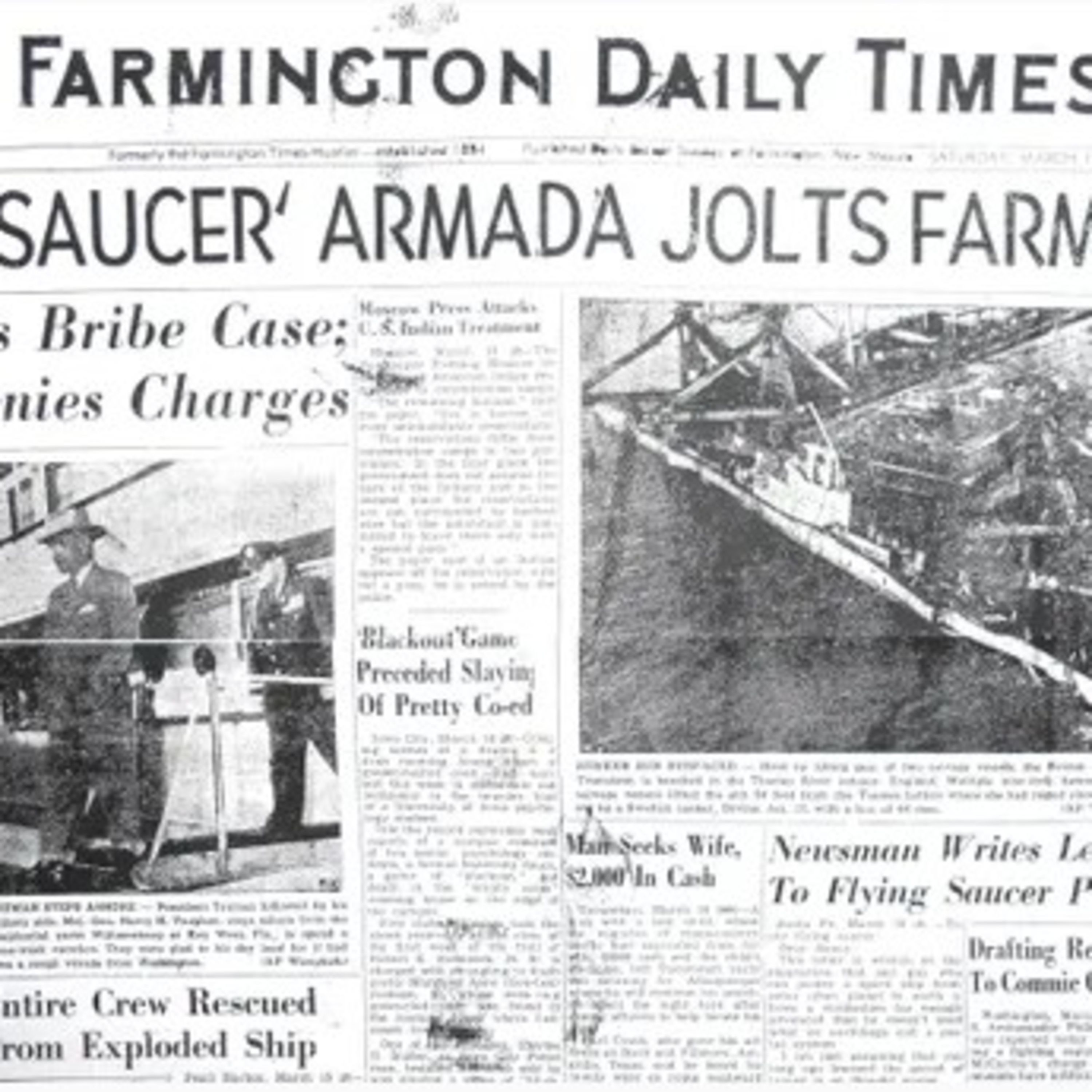 JT covers the intriguing 1950 Farminton UFO Armada, considered by many UFO researchers as one of the best cases for a more complex explanation of all UFO's than swamp gas, meterors, balloons or the planet venus.