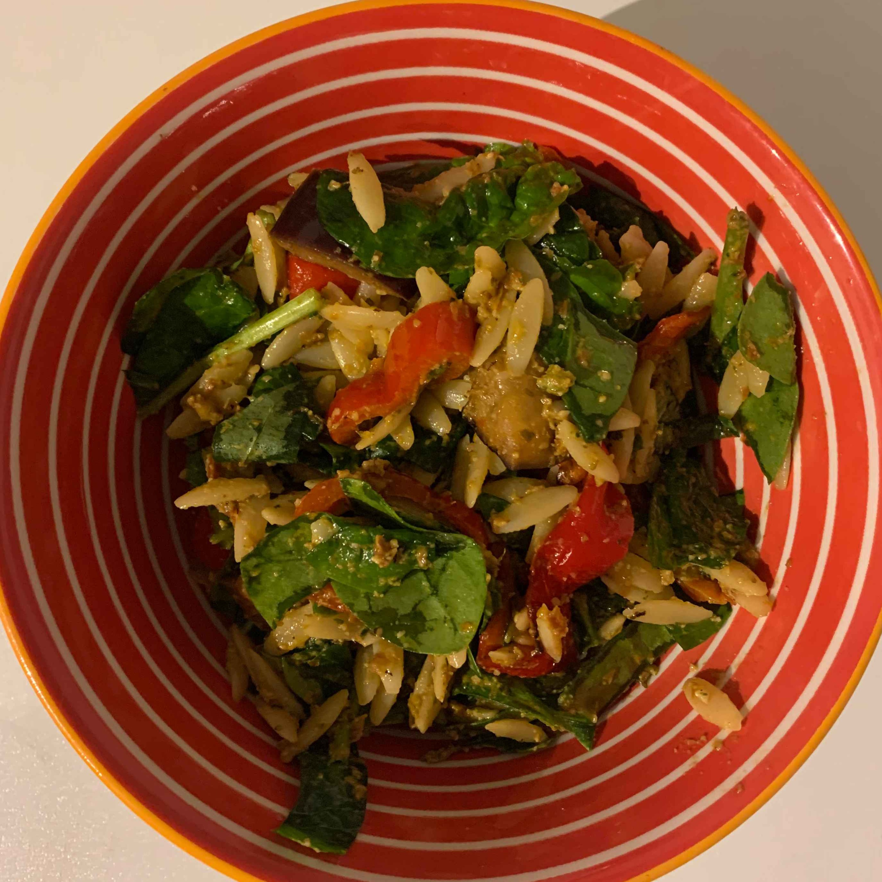 The ORZO RECIPE is right there as is the SUN-DRIED TOMATO PESTO recipe that was part of it. And I ended up reheating the pasta and plonking a basic variation of HARISSA TOMATO AND BURRATTA SALAD on top of it.
