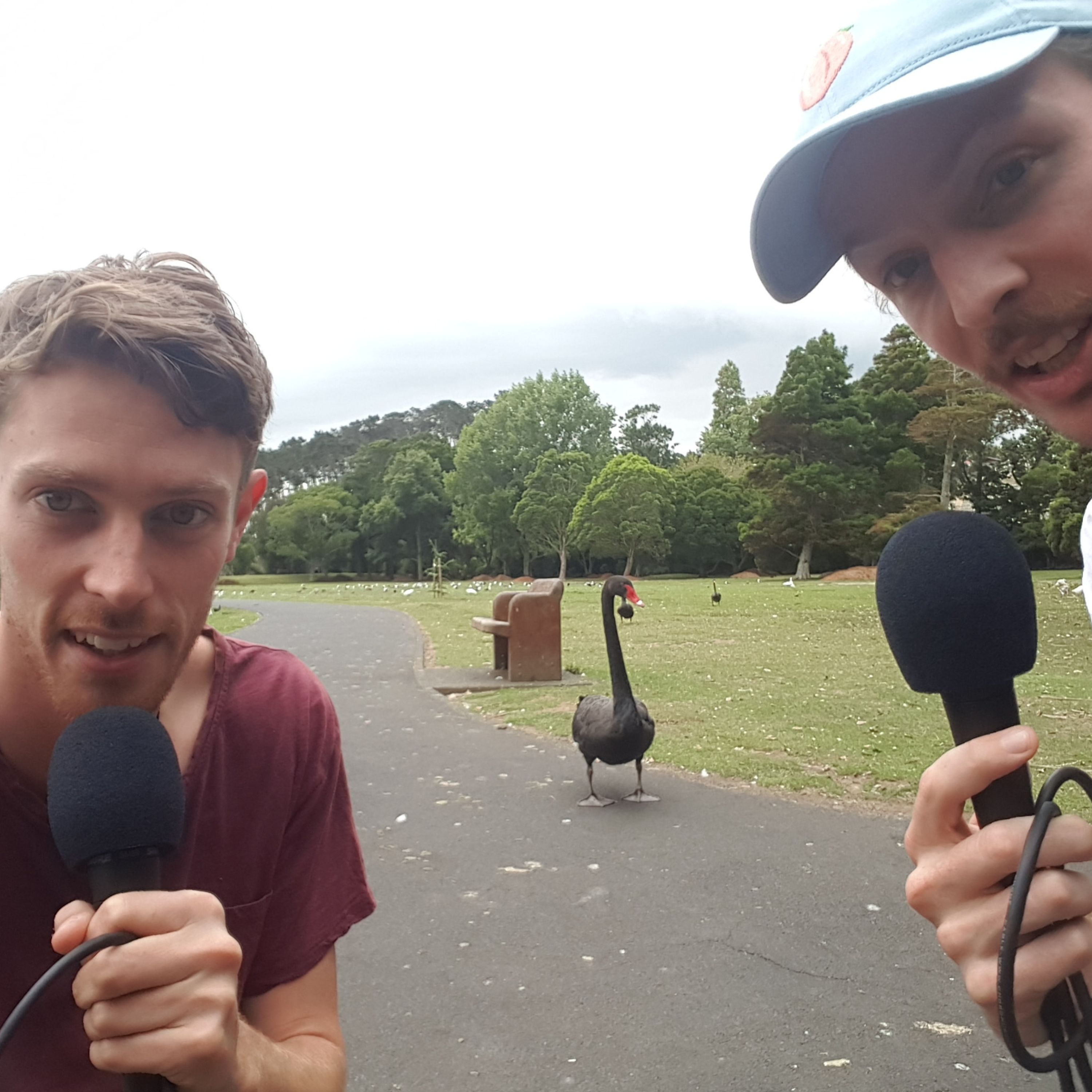The sound of crickets accompanies the boyz on a walk in the sunshine as they take their recording gear to greener pastures. Terrifyingly large geese, numerous pooping ducks and very noisey cicadas meet the boyz on their travels but they will not be stopped! Guybo gets philosophical about which members of society are performing a job of importance, Timbly pitches a sensational idea for a movie about a briefcase. Somily delivers a solid performance, continuity is on point and we all have a think about bulls inside of china shops.