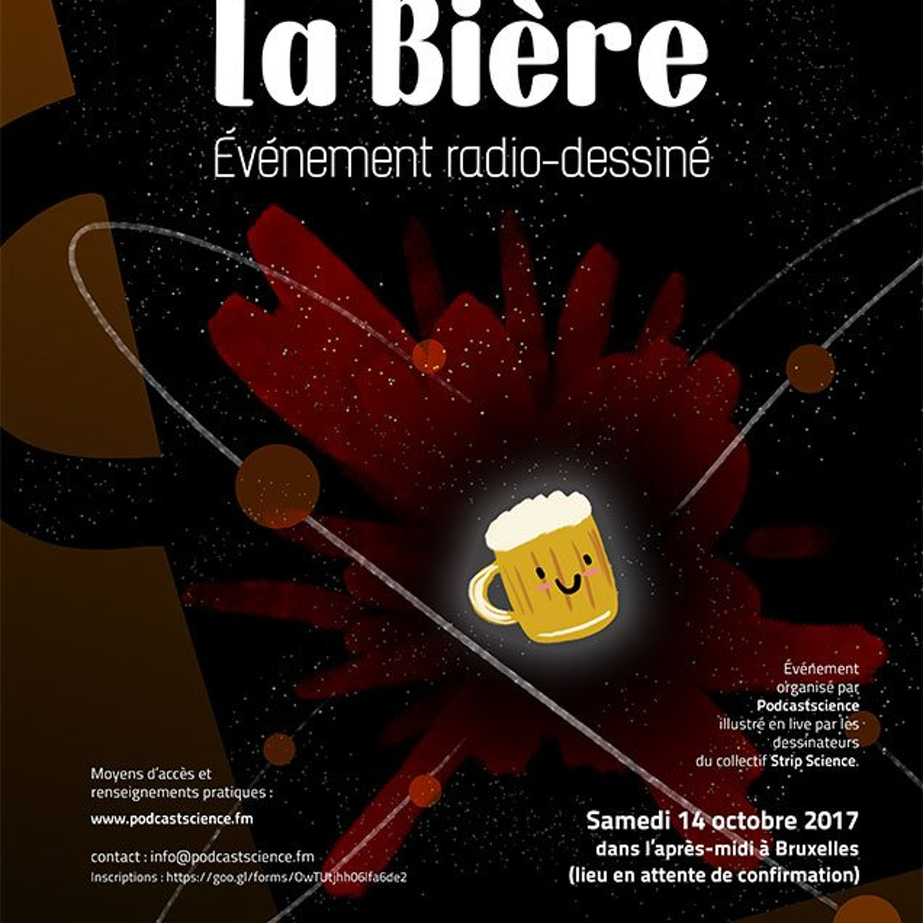 C’est à Bruxelles que Podcast Science a posé ses valises pour cette nouvelle émission radio-dessinée. Et nos micros, c’est plus précisément au bar “l’Ultime Atome” que nous les avons installés, nom de bar qui évidemment réjouit Claire ! Mais c’est plutôt le sujet choisi pour cette émission radio-dessinée qui risque d’en réjouir plus d'un j'espère ! Car quel sujet ! Un sujet qui passe bien au goulot, mais qui se déguste aussi au verre, une boisson qui fait mousser les cerveaux et saliver les papilles de presque tous, du poivrot de bar au plus fin gourmet : la BIÈRE !Vous êtes sur Podcast Science, nous sommes le samedi 14 octobre, bienvenue dans l'émission 313.Dossiers présentés Vincent : Fabrication de la bièreEléa : Te plante pas de bièreRobin : Géométrie des bullesNico Tupe : Bière et StatsManu : Bières et bullesVincent : Histoire de la bièreRobin : Décroissance de la mousseElodie : Bières et neurones font-ils bon méningesTaupo : Bière et PetRobin : Vitesse à laquelle on finit son verre en fonction de la formeEt n'oublions pas les quiz d'Alan qui ont ponctués toute l'émissionNotes et illustrations : https://www.podcastscience.fm/emission/2017/11/02/podcast-science-313-emission-radio-dessinee-la-biere