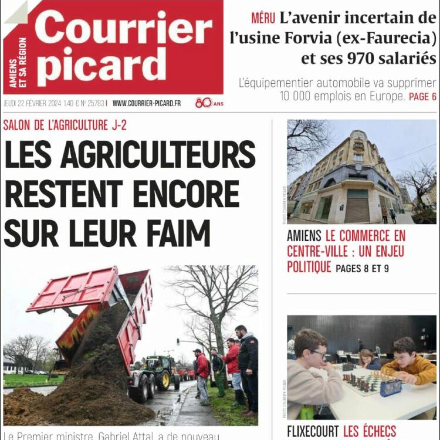 A la Une du Courrier Picard, les agriculteurs qui restent sur leur faim ; La Croix l’hebdo fait titre sur les addictions ; face au malaise paysan, Famille Chrétienne propose un modèle alternatif à la ferme des Blottières ; la recette de la mousse de betterave à retrouver dans La Vie.