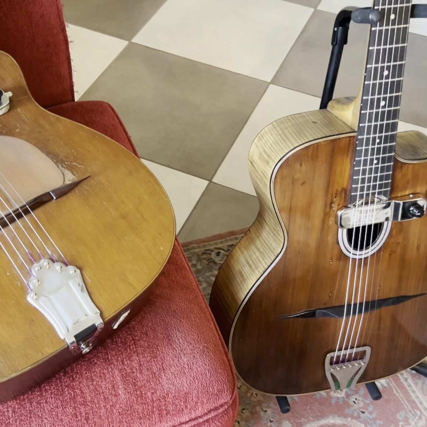 Nous sommes reçu chez Jean Ledroit, près de Montignac en compagnie d'Alain Dubreuil, avec lequel il forme un duo de guitaristes de jazz manouche.