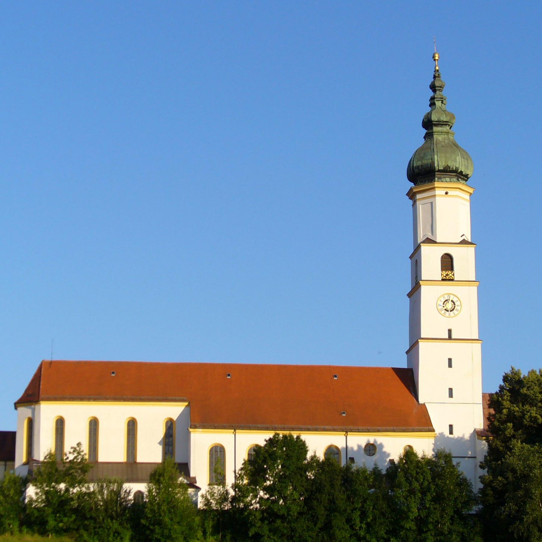 Über dem lang gestreckten Marktplatz thront die Pfarr- und ehemalige Klosterkirche St. Veit. Fünf wertvolle Glocken läuten im hoch aufragenden Zwiebelturm des berühmten Johann Michael Fischer.