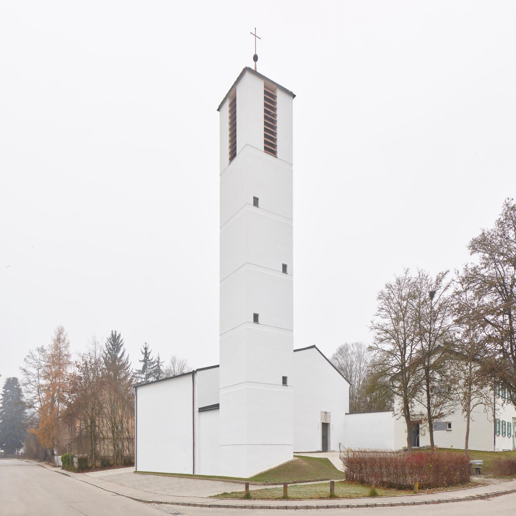 Die Christuskirche wurde vom Landshuter Architekten Kritschel geplant und erbaut, im Oktober 1958 konnte sie eingeweiht werden. Das ganze Gebäude strahlt eine bemerkenswerte Ruhe aus. Besonders fallen die Glasfenster von Marlene Reidel auf.