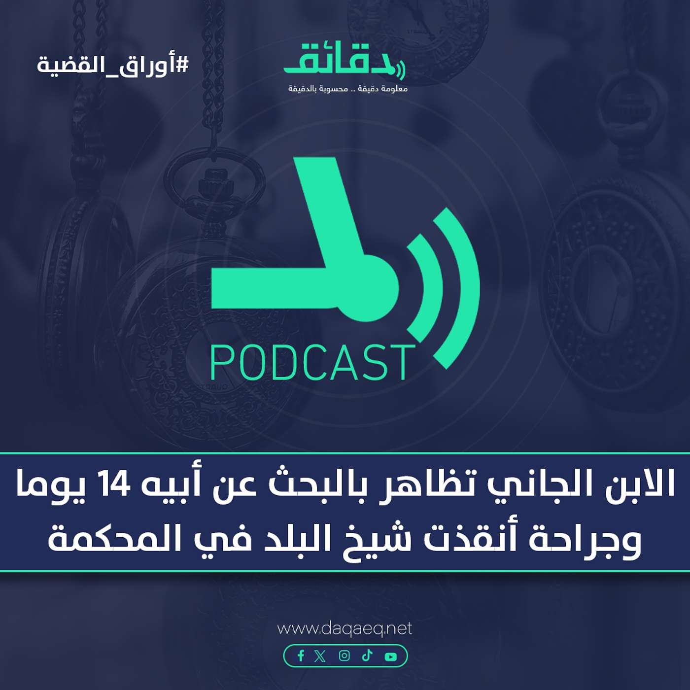 الابن الجاني تظاهر بالبحث عن أبيه 14 يوما.. و"جراحة" أنقذت شيخ البلد أمام المحكمة .. عنوان حلقة بودكاست أوراق القضية بمشاركة معتز أحمد مصطفى المحامى بالنقض مع الصحفي هيثم برعي من إنتاج دقائق