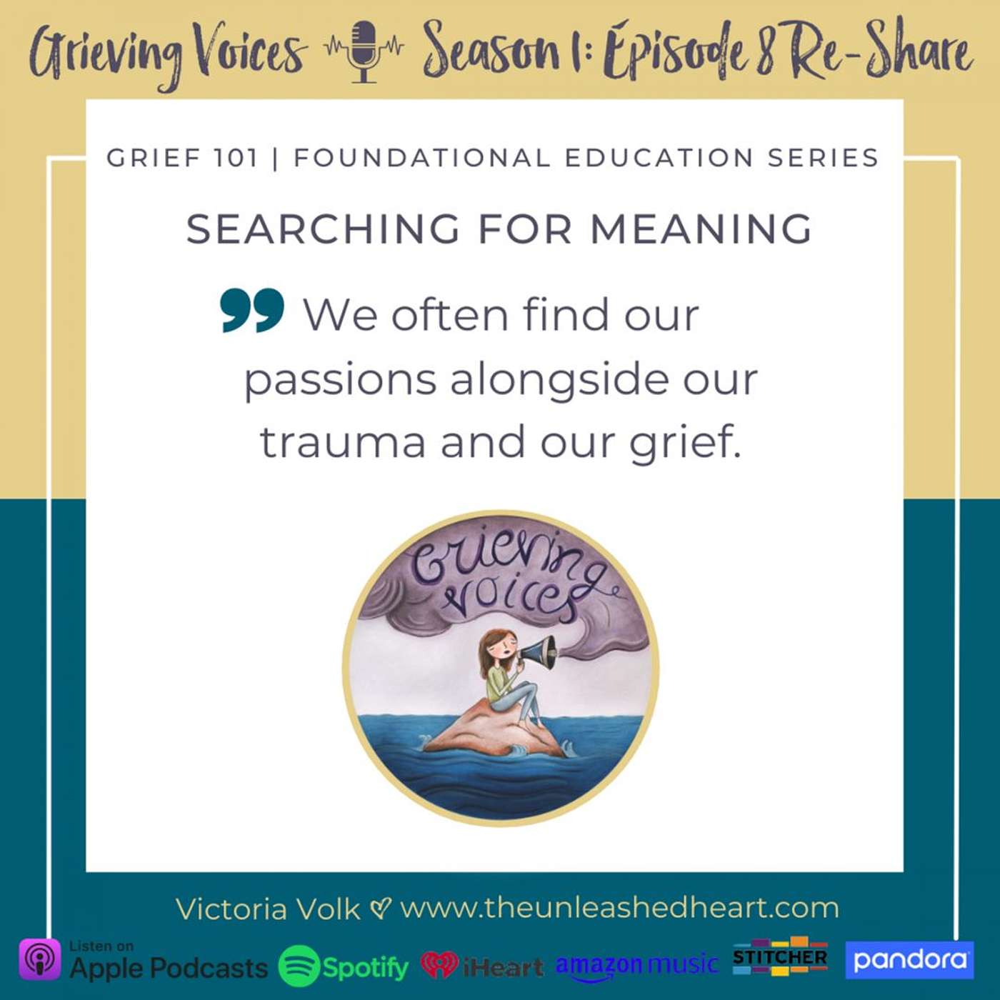 If you'd like to share your grieving voice on the show or want to share your thoughts about an episode, please send an email to victoria@theunleashedheart.com.