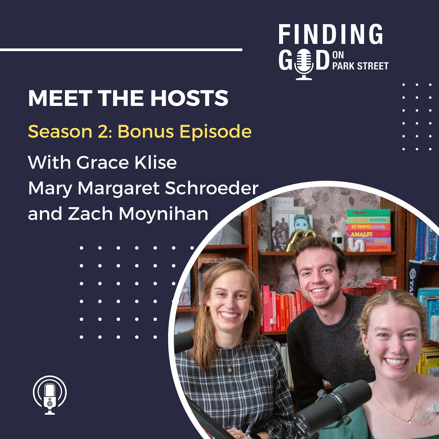 Join our hosts, Assistant Chaplain Grace Klise, Mary Margaret Schroeder '24, and Zach Moynihan '25, as they share more about their own lives, relationships with one another, and faith journeys on this special bonus episode. Although you've heard them on the mics with our guests, tune in to learn more about the people who are bringing Finding God on Park Street to life. Hear more about their academic interests, paths to Yale, and behind-the-scenes podcast insights in this lively, dynamic conversation.