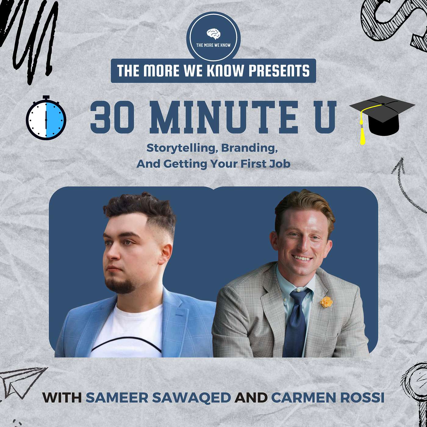 30 Minute U is a NEW series under The More We Know Podcast featuring Sameer Sawaqed, Host of one of the worlds top mentorship platforms The More We Know together with Carmen Rossi, a top CEO and entrepreneur who is the genius behind 8 Hospitality Group. Carmen owns and operates some of the biggest night clubs and restaurants in Chicago and is also a professor. Carmen employs hundreds and operates in different business areas as well. 30 Minute U aims to prepare you with skills for the real world in just under thirty minutes.