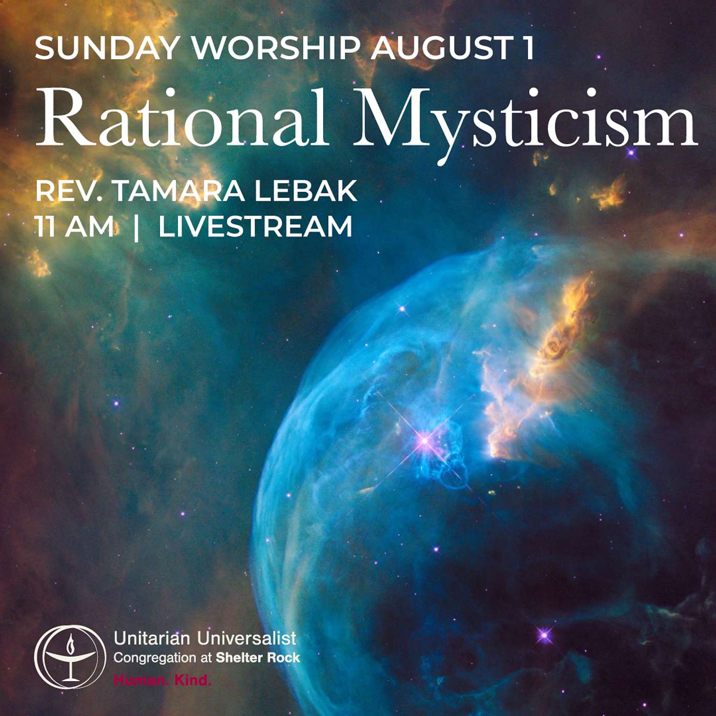 Rev. Lebak wrote, "I have described my own theology as rational mysticism, religious humanism, and even described myself as a Gestalt theist. Coming away from training in Psychedelic Assisted Therapy, I have been engaged more and more in conversations with how it is possible to be both rational and mystical. I would argue that religious idolatry and idolatry of the mind are equally as dismissive to the big picture of our existence. Award-winning Journalist John Horgan has written a book called Rational Mysticism that explores how science, theology, and philosophy all attempt to formulate an empirical explanation about the meaning of life." On August 1, 2021, Rev. Lebak explored how to link the mind of a skeptic with the heart of a seeker.