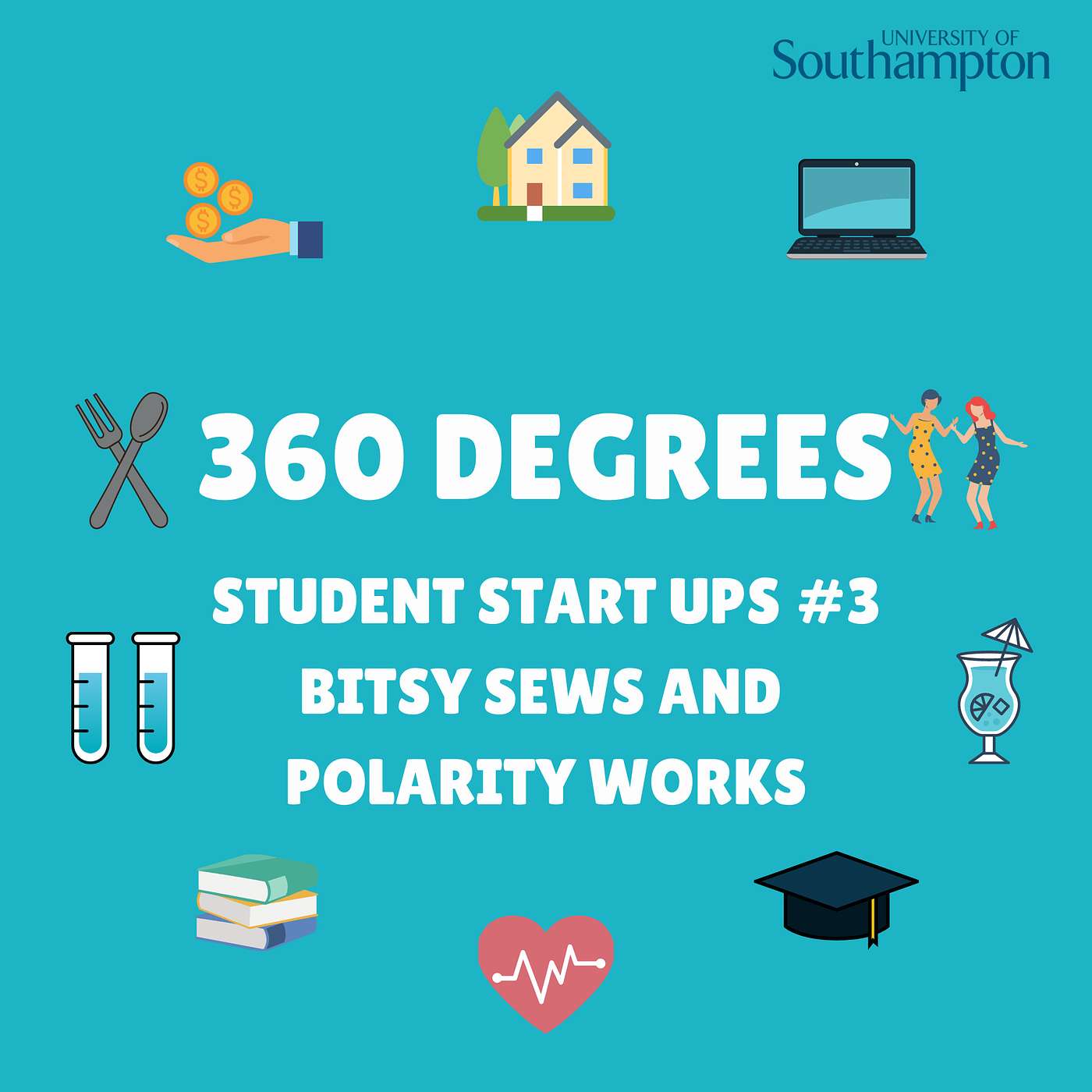 This is the third instalment of shining a light on some of the fantastic student start ups at the University of Southampton. In this episode we chat to Bitsy, who sews custom artwork on to clothes, bags and other fabrics as well as the brains behind Polarity Works.