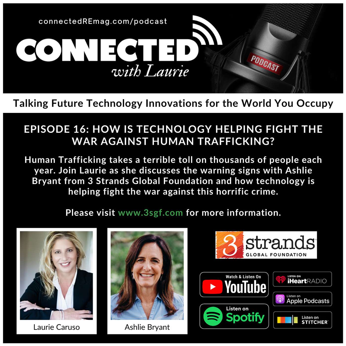 Human Trafficking takes a terrible toll on thousands of people each year. Join Laurie as she discusses the warning signs with Ashlie Bryant from 3 Strands Global Foundation and how technology is helping fight the war against this horrific crime. Please visit www.3strandsglobalfoundation.org for more information.