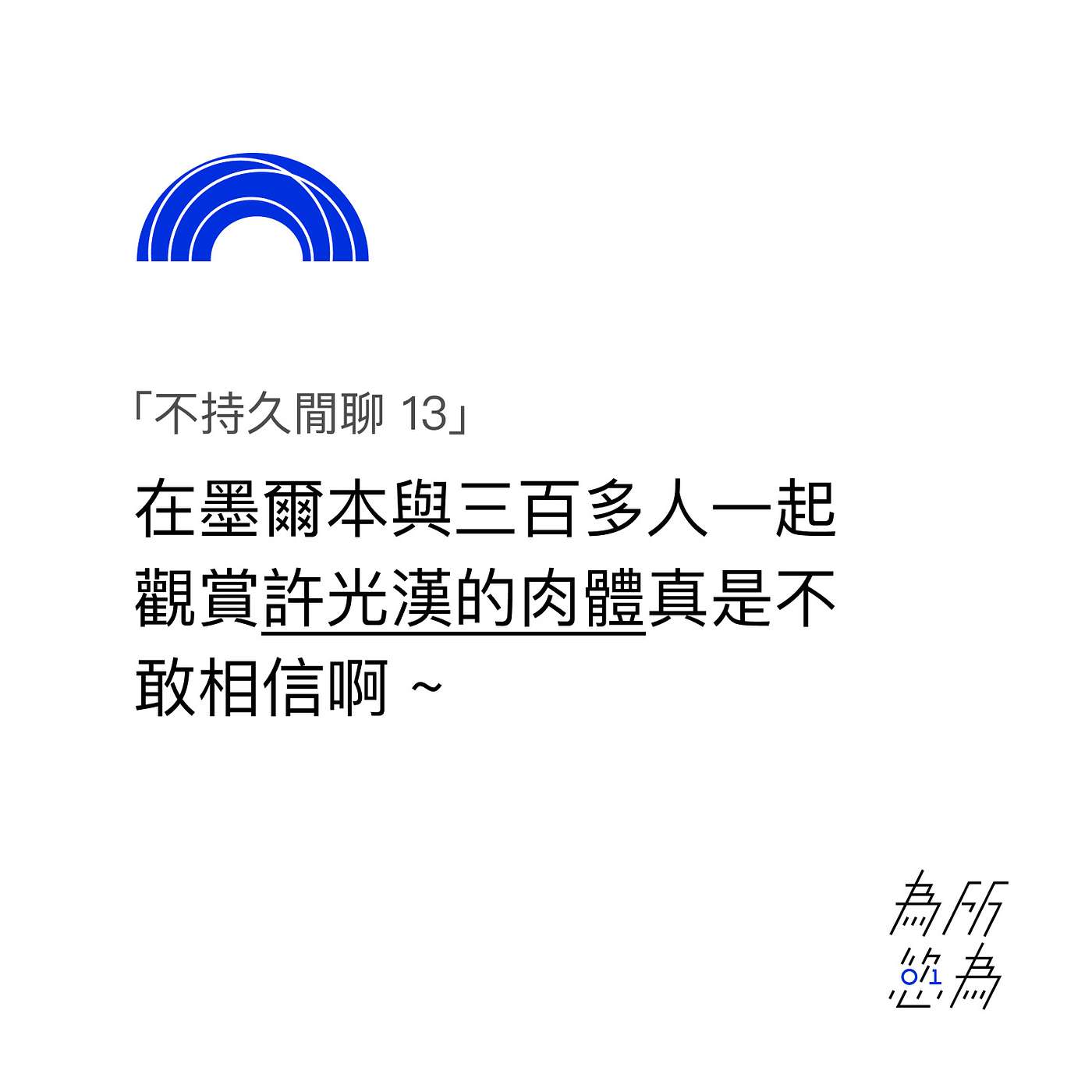 為所慾為二人組當然也要和友人們一起飛去觀看許光漢和林柏宏的火花碰撞,與在場的其他三百多人一起笑中帶淚,場面真的『不敢相信 ~』。也許這不是一部滿分電影,但這種與大家尤其是如此多社群裡的人一起共享的快樂感是兩百分。