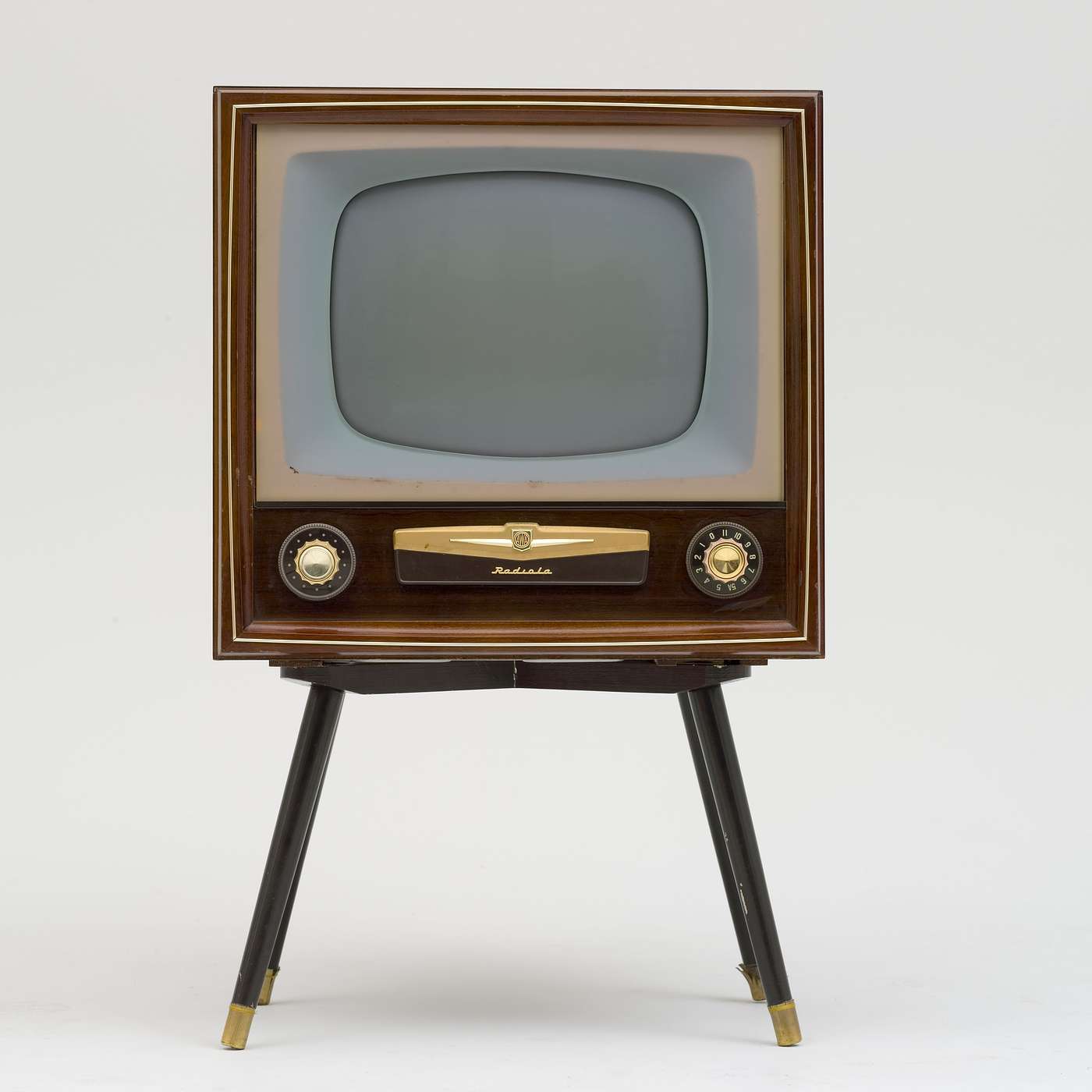 Image: Object No.B2015 Television receiver, 17' A.W.A. Radiola 'Deep Image', black and white, maple finish, cabinet on stand, manufactured by A.W.A, Australia, 1956