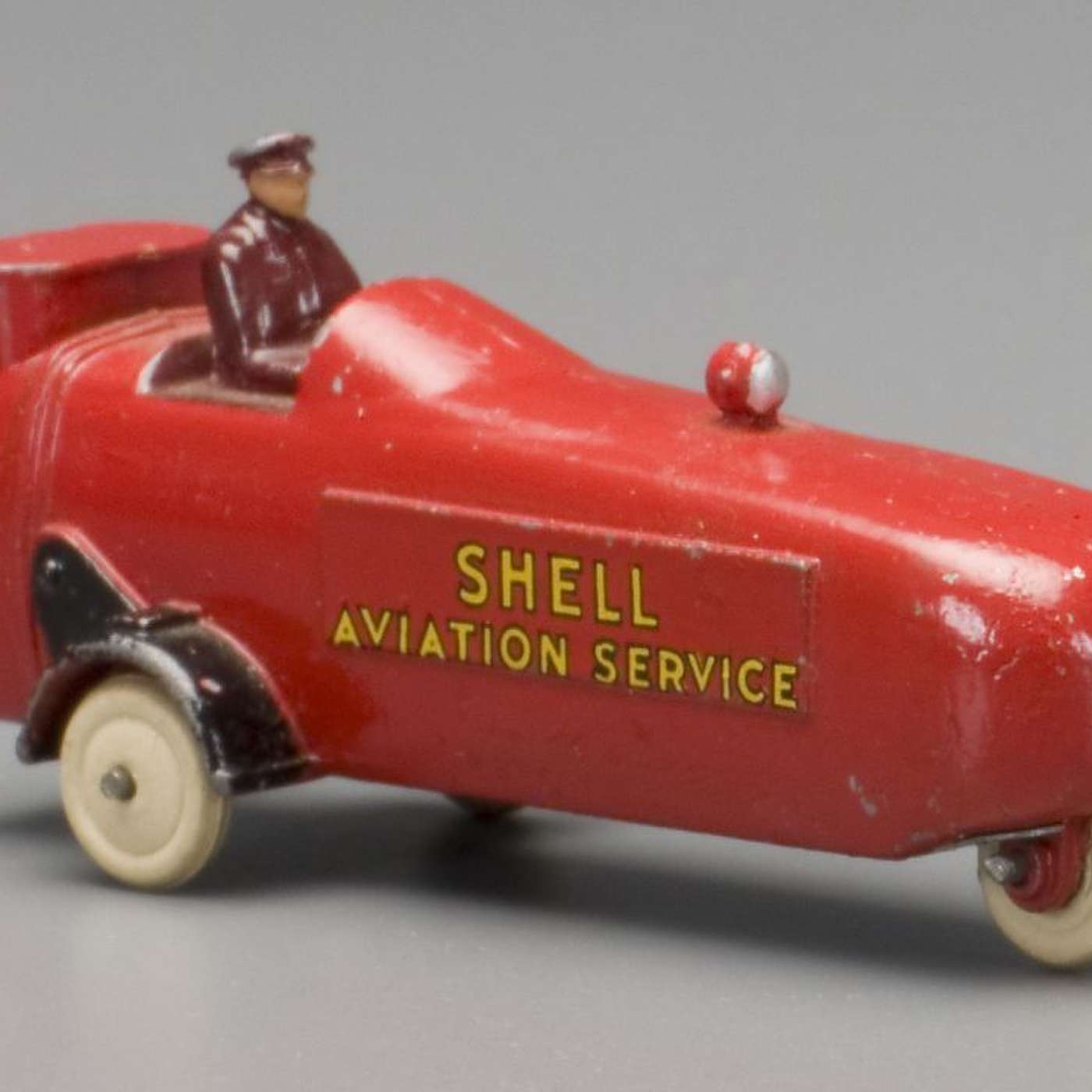 Image: Dinky toy 'Shell Aviation Service' car. This toy is from a small collection of 16 pre-Second World War Dinky vehicles which illustrate design and production at a time when Dinky Toys were the market leaders in die-cast toy vehicles.