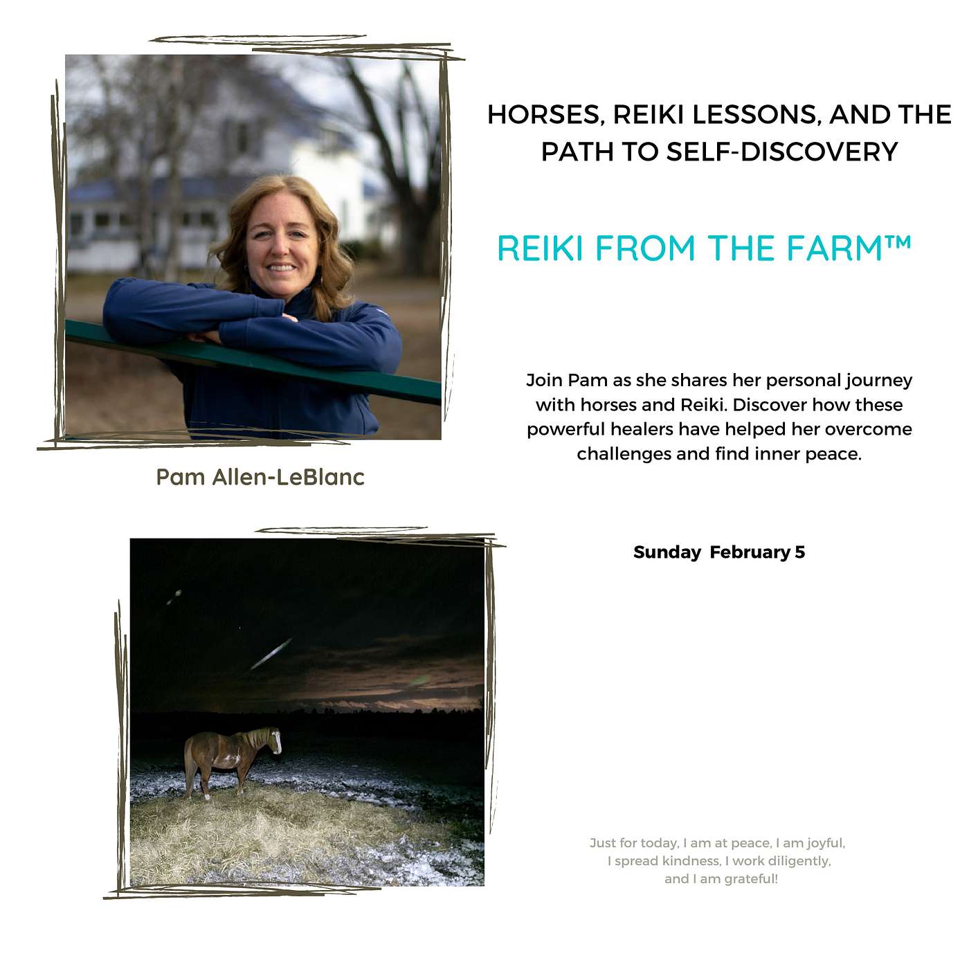 Join Pam as she shares her personal journey with horses and Reiki. Discover how these powerful healers have helped her overcome challenges and find inner peace.