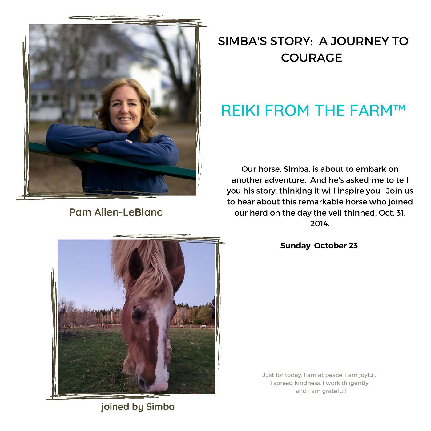 Our horse, Simba, is about to embark on another adventure. And he's asked me to tell his story, thinking that it might inspire you. Join us to hear about this remarkable horse who joined our herd on the day the veil thinned, Oct. 31, 2014.