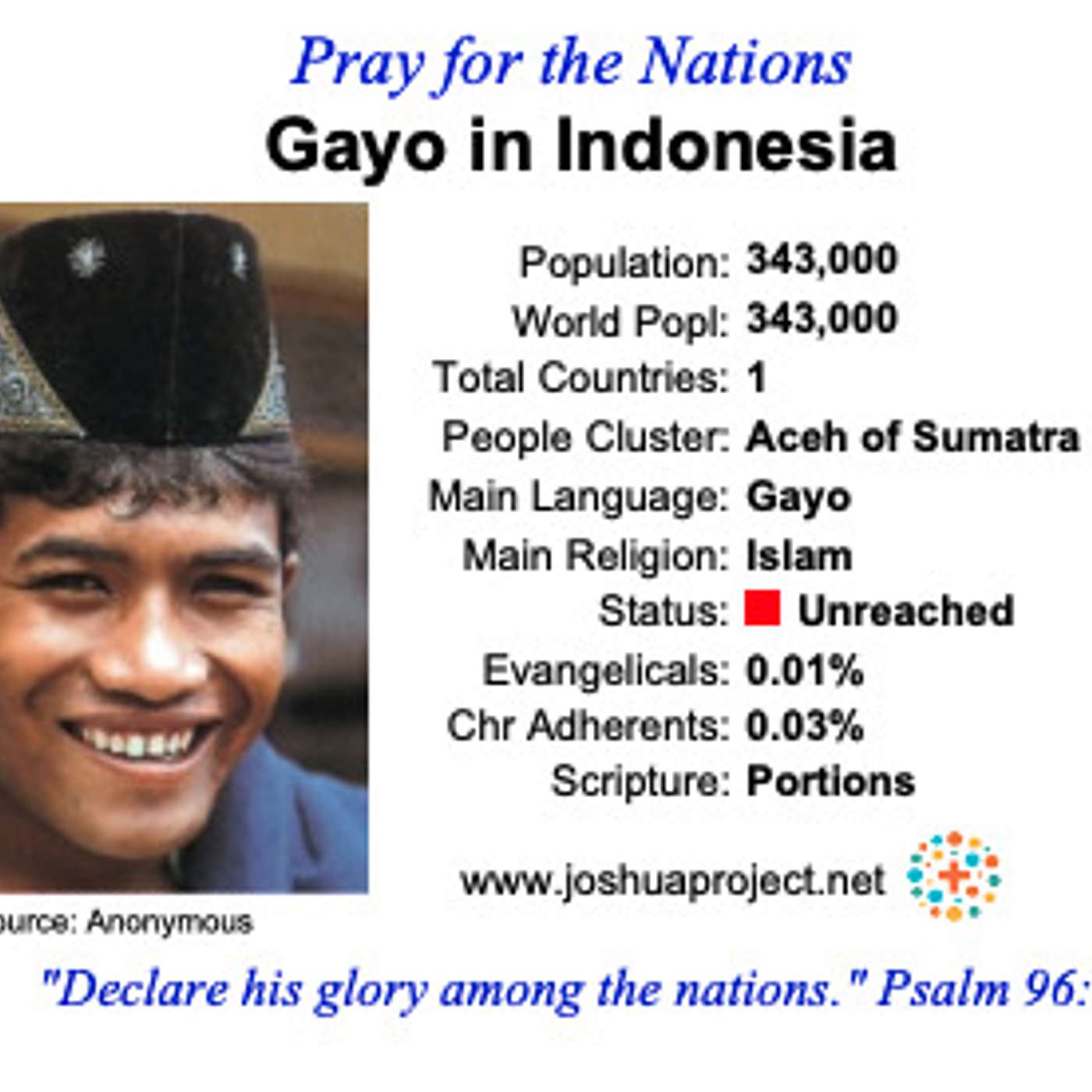 Žalm 29:11 Hospodin dáva silu svojmu ľudu. Hospodin požehnáva svoj ľud pokojom. http://bit.ly/nzes-dneshttps://slovenskamisijnasiet.sk/Viac o etnickej skupine Gayo nájdete na:https://joshuaproject.net/people_groups/11837/ID