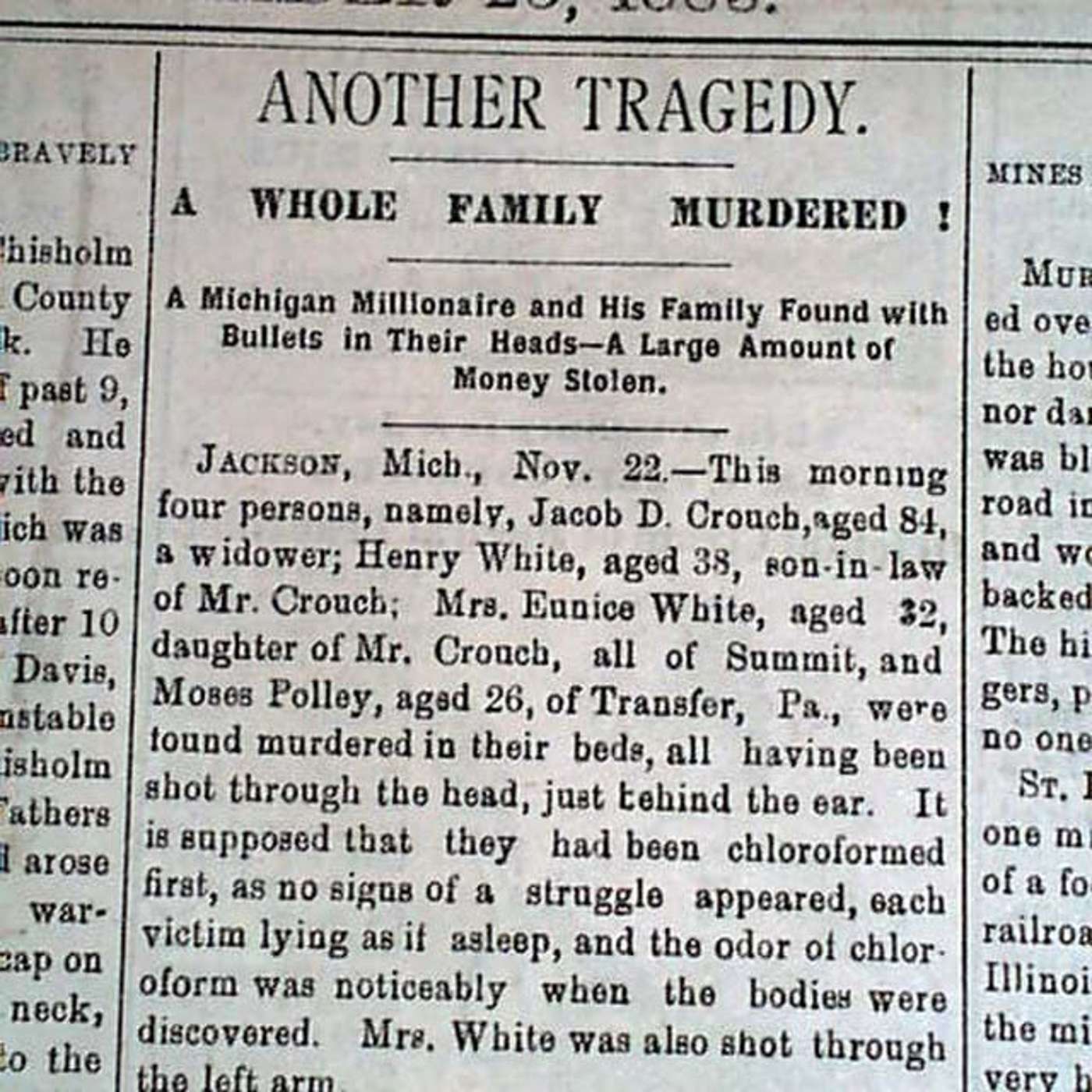 We are taking you back to the early 1800's to the Crouch family murders in Jackson, MI. The entire family was massacred in a horrifying scene. This story also proves there have always been true crime junkies and lookie Lou's!!!