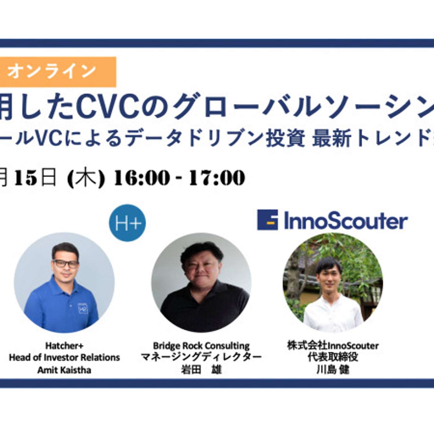 他方で、AIや機械学習を活用してベンチャー投資を実施するVCが欧米を中心に増加しています。CrunchbaseからSNSまでのデータを活用し、ソーシング から投資実行までのフローの一部を自動化することによって、ベンチャー投資のDXを実現する手法です。この大きなトレンドの中で、独自のアルゴリズムを活用したユニークなベンチャーキャピタルをシンガポールで運営しているHatcher+と、国内で唯一スタートアップソーシング に特化したSaaSを展開している株式会社InnoScouterが共催で、AIを活用したグローバルなスタートアップソーシング や、データ・ドリブン投資に関するセミナーを開催します。