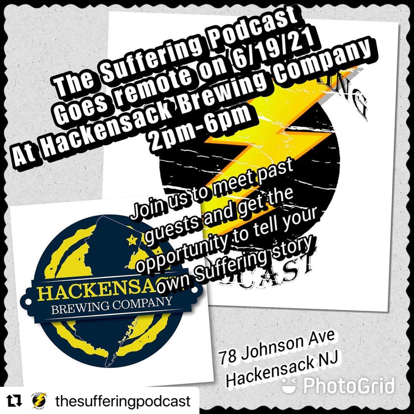 The incredible journey of The Suffering Podcast is celebrated here with our first remote show at Hackensack Brewing Company. Our gracious host allows us to bring our list of prior guest in and meet some new ones. We love what we are doing and we wanted to give our listeners and guests a venue to come together and exhibit what we have learned, WE AREN'T BROKEN BUT WE'RE PRETTY DENTED!