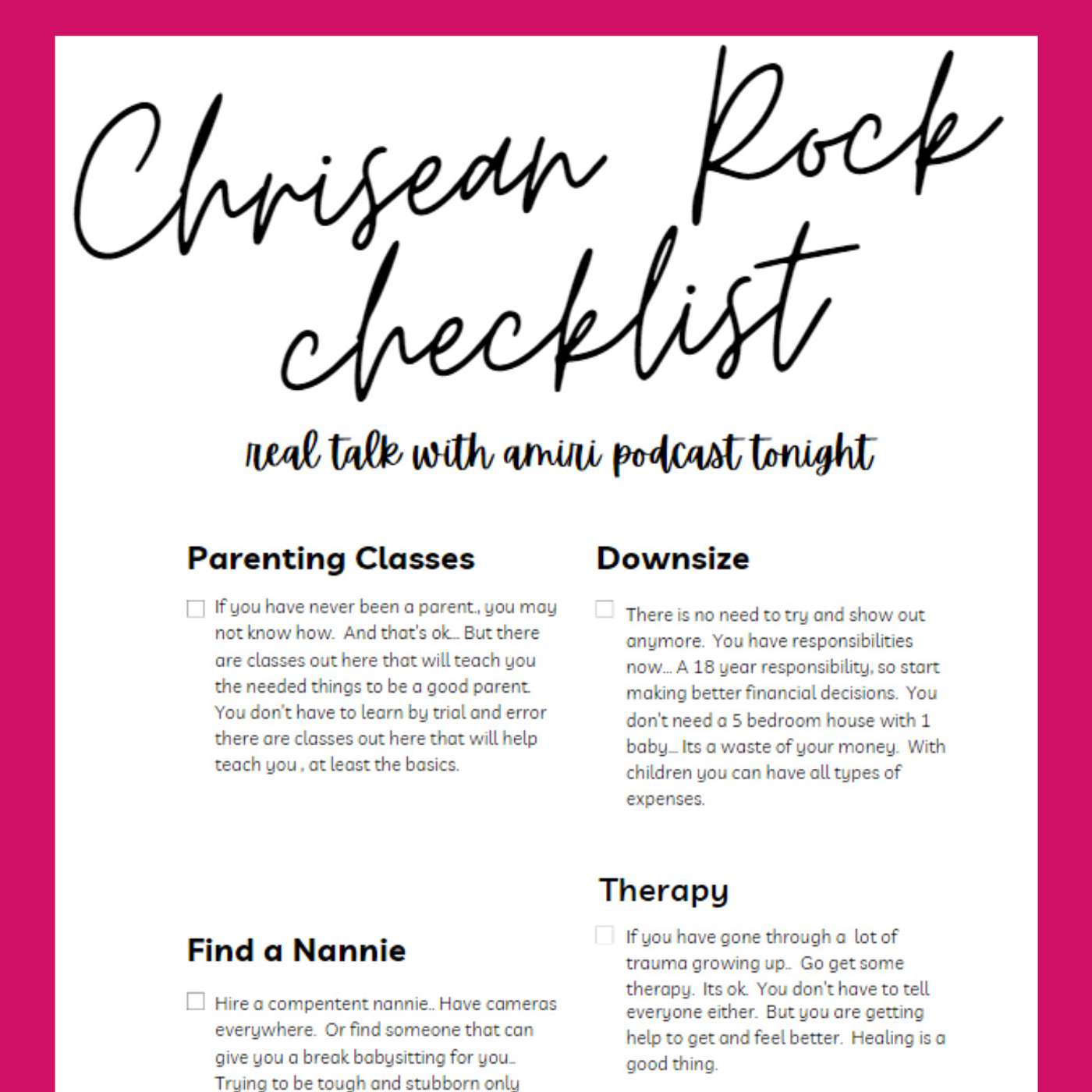 Thought about a checklist for Ms. Chrisean RockĀ