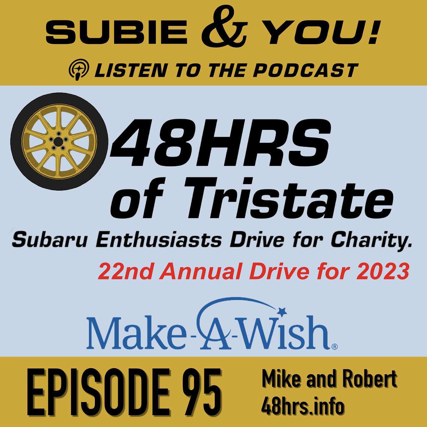 On this episode of the podcast we talk to Cory and Robert who tell us all about 48 Hours of Tristate coming up for 2023! This event raises money for a great charity, is a great coming together of so many Subaru enthusiasts, and is an all together good time!!