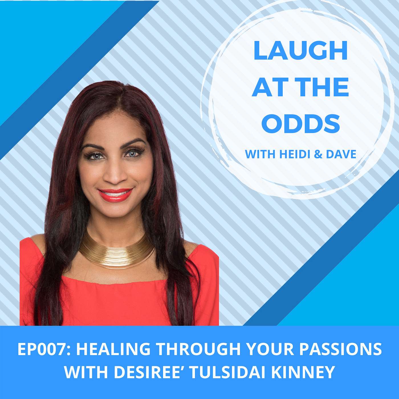 In Episode 7 of Laugh at the Odds Podcast with Heidi and Dave, we speak with Desiree’ Tulsidai Kinney and learn about her passions and how devoting her time and energy to them has impacted her grief and healing.