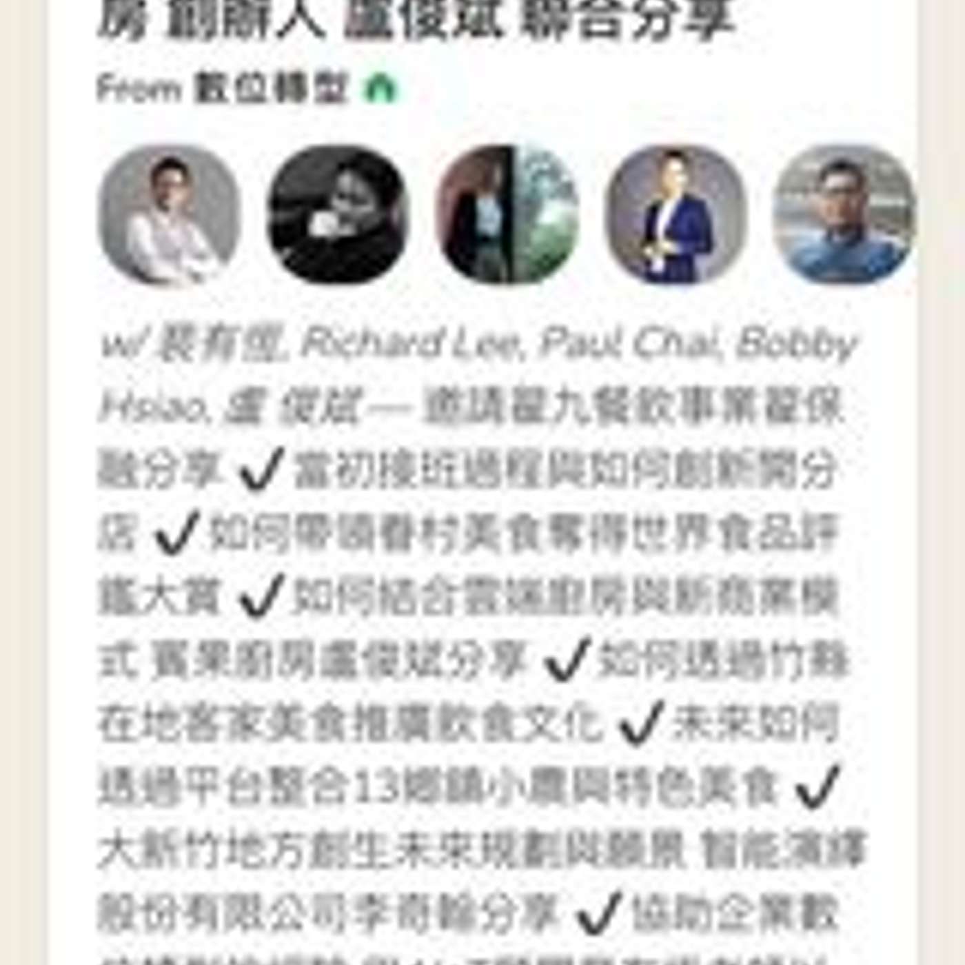 本集邀請翟九 餐飲事業 翟保融分享