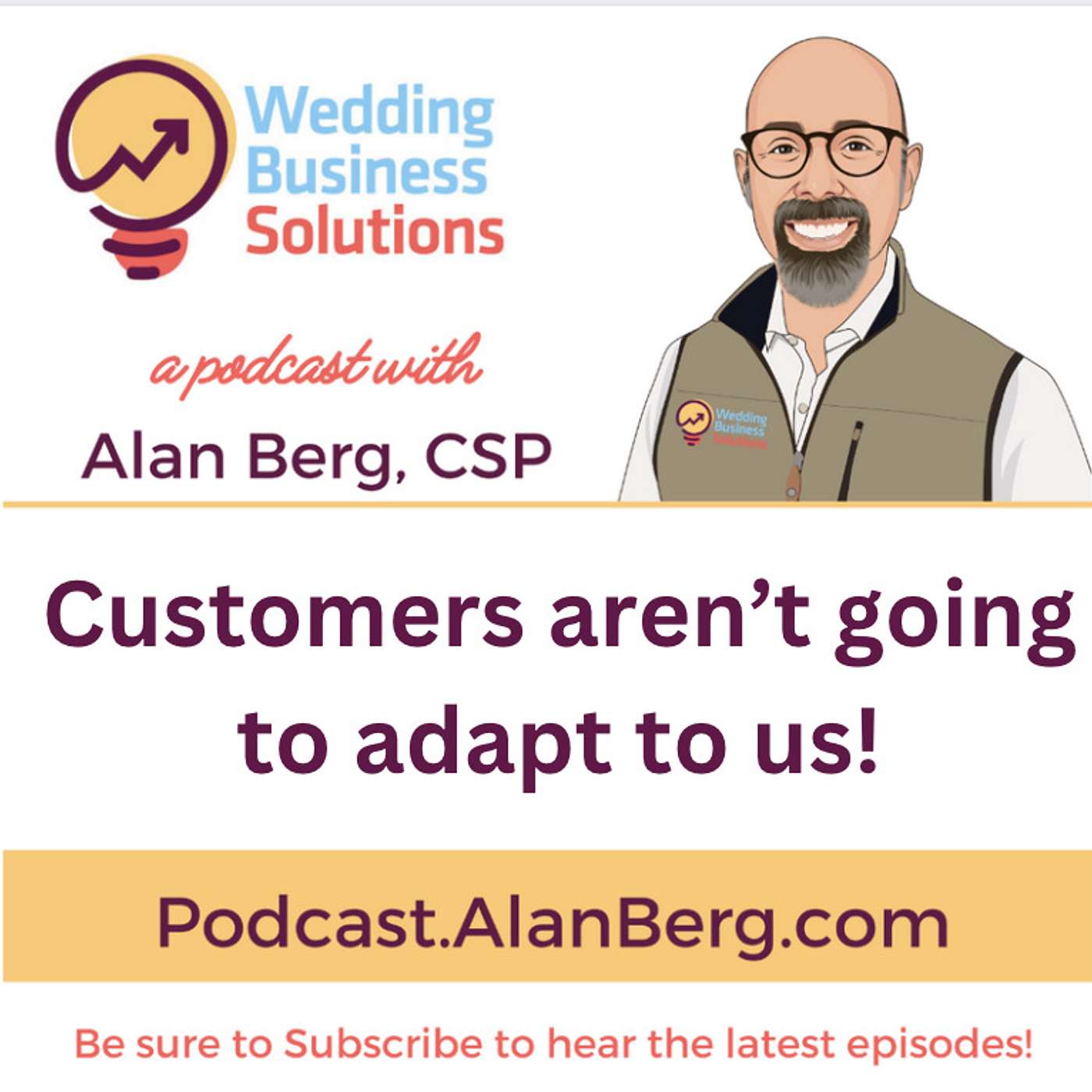 I'm Alan Berg. Thanks for listening. If you have any questions about this or if you'd like to suggest other topics for "The Wedding Business Solutions Podcast" please let me know. My email is Alan@WeddingBusinessSolutions.com. Look forward to seeing you on the next episode. Thanks.