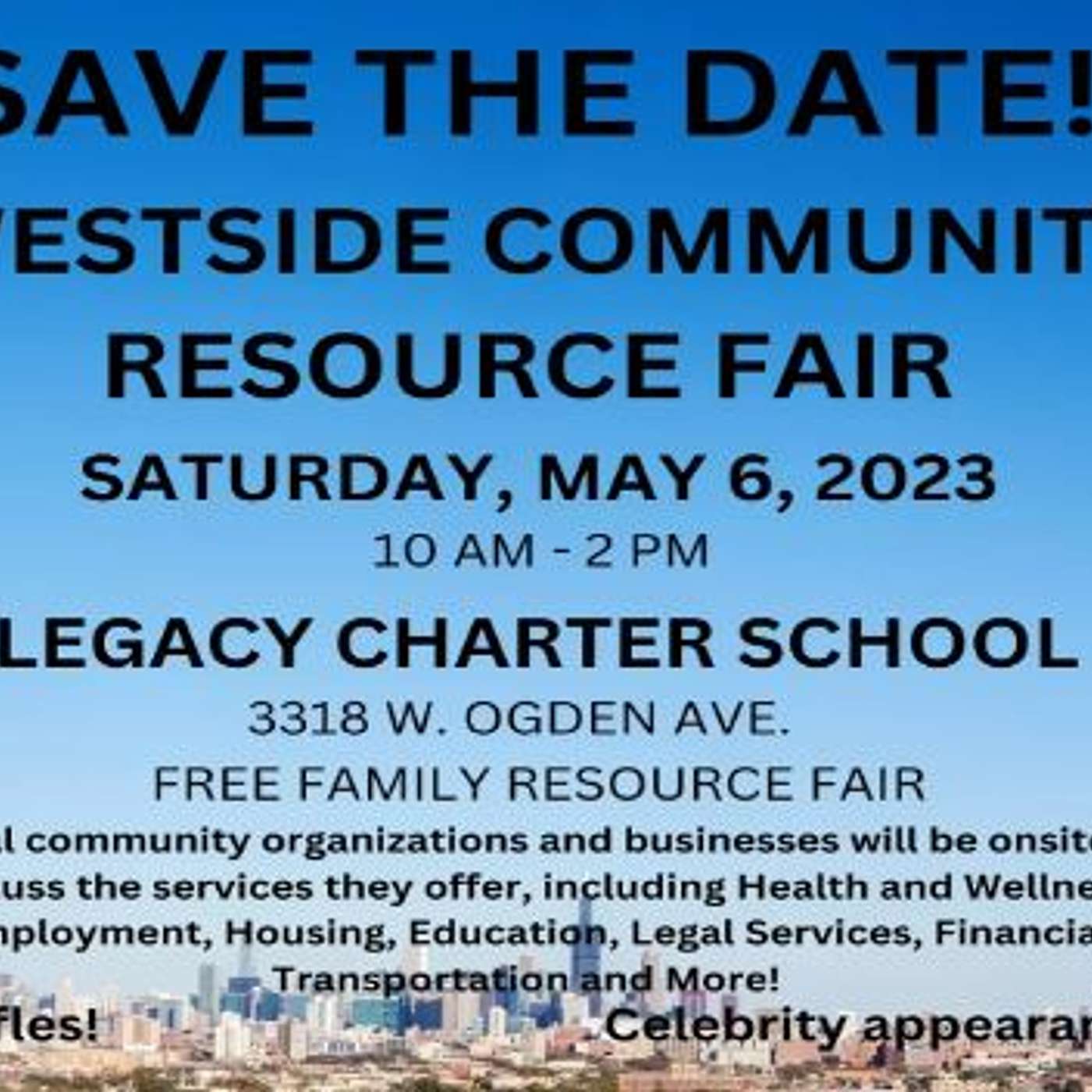 Yvette Warren, Director of Development for Legacy Charter Schools, shares the many resources that will be offered at the May 6 th event, 3318 W. Ogden Ave, Chicago, IL 10am-2pm. www.legacycharterchicago.org